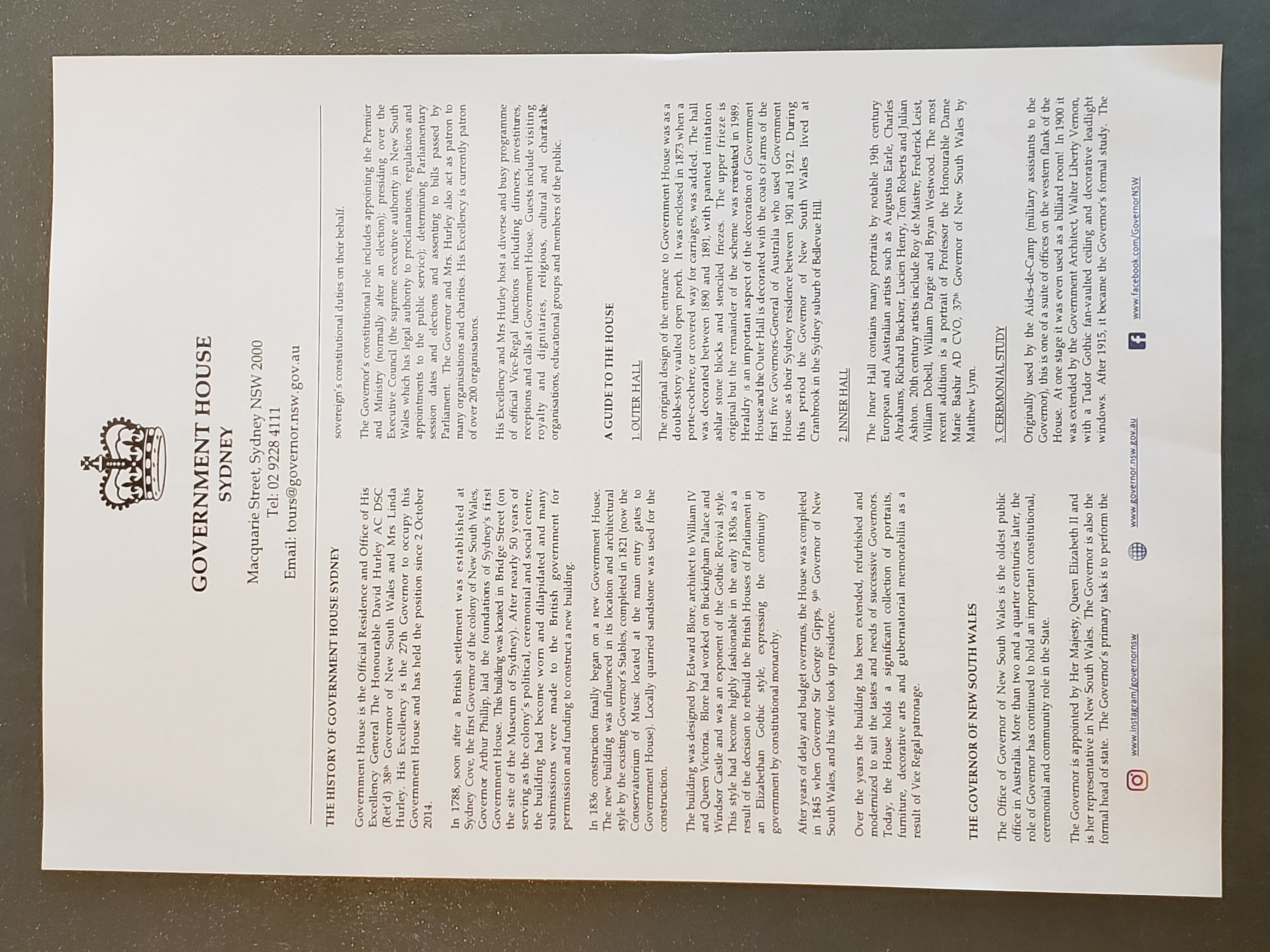 I walked from Circular Quay to the Government House which has free tours on the . The Governor of NSW actually lives there. No photos allowed inside though.