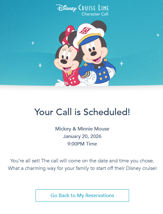 I finally scheduled the complimentary character calls from Disney Cruise Line for the cruise that leaves tomorrow.