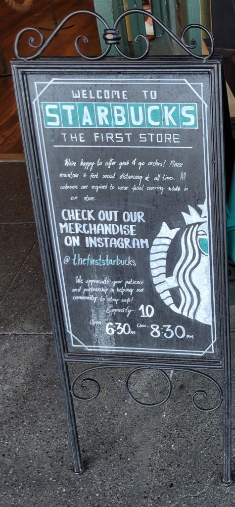 Today I decided to get a very early start. The line at the first Starbucks always seemed long, so the solution was to get there just as it was opening. It wasn’t far from the hotel and near Pikes Place Market.