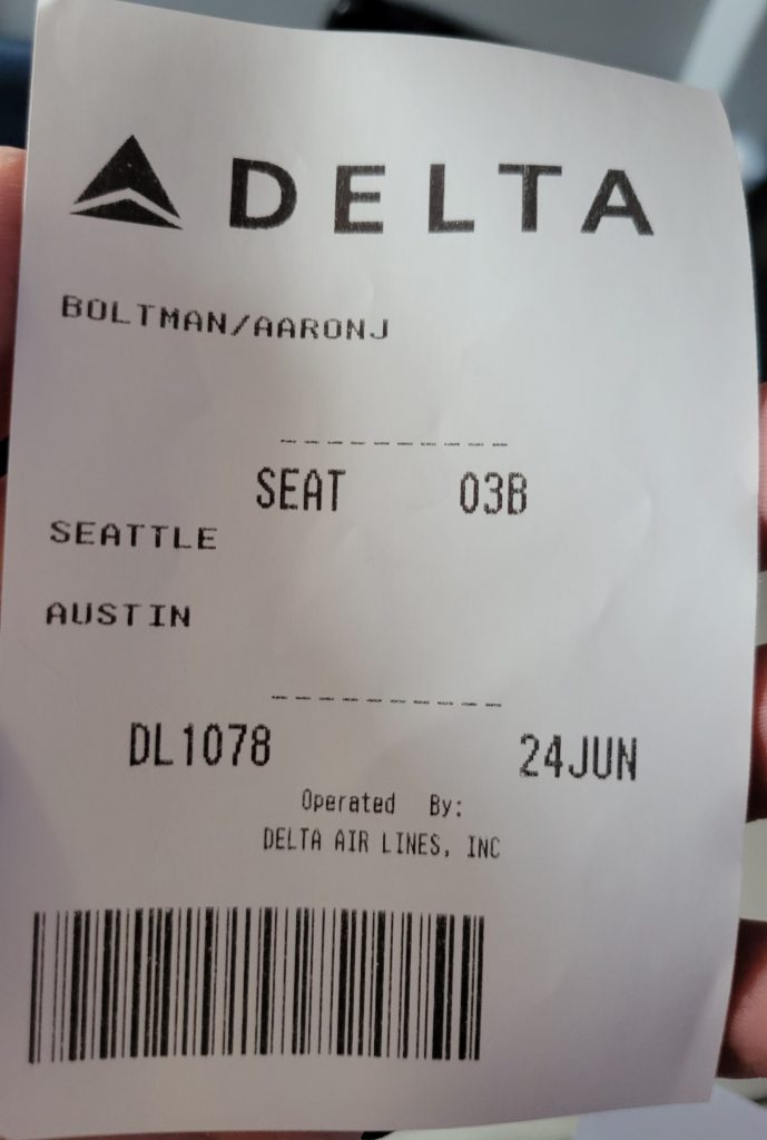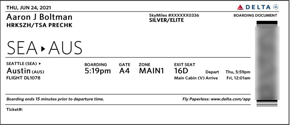 Eventually I arrived in Austin and picked up my luggage. I got picked up by the shuttle bus to the parking and started to drive home at about 12:30 AM. I arrived around 3:15 AM as I was taking my time to conserve fuel.
