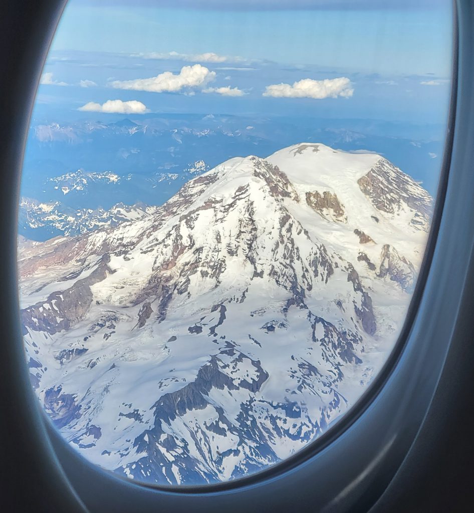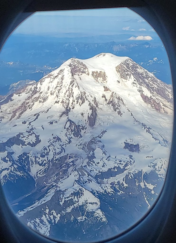 I didn’t get a window seat, but the captain flew around Mt Rainier on my side. The passenger next to me was nice enough to let me get a couple of photos. It was quite spectacular.