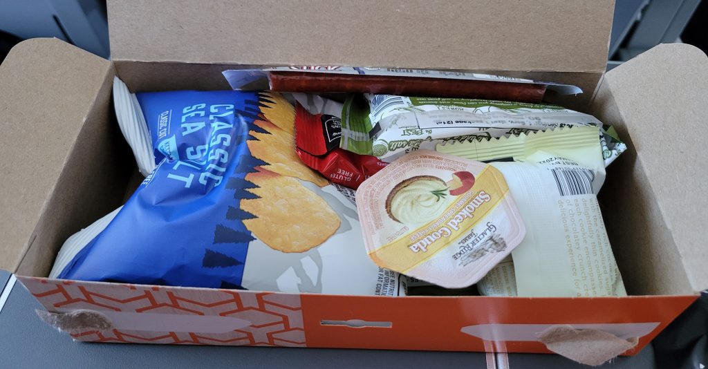 The first class meal was yet another snack box. I was glad to have some food in the airport as this would just not be enough to survive.