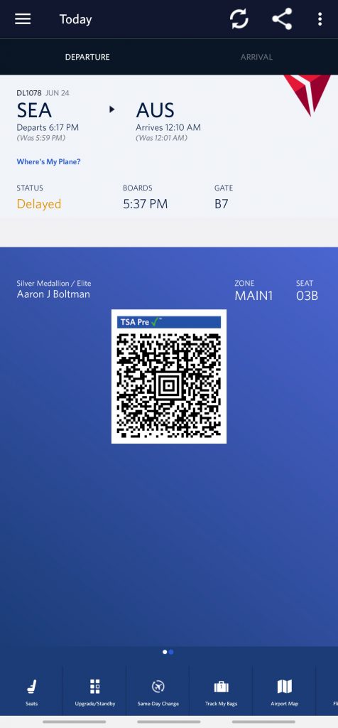 I had lunch/dinner at Pei Wei at the airport, it wasn’t great, but I needed to eat something because I wasn’t sure I would get any food on the airplane as I wasn’t upgraded just yet.
