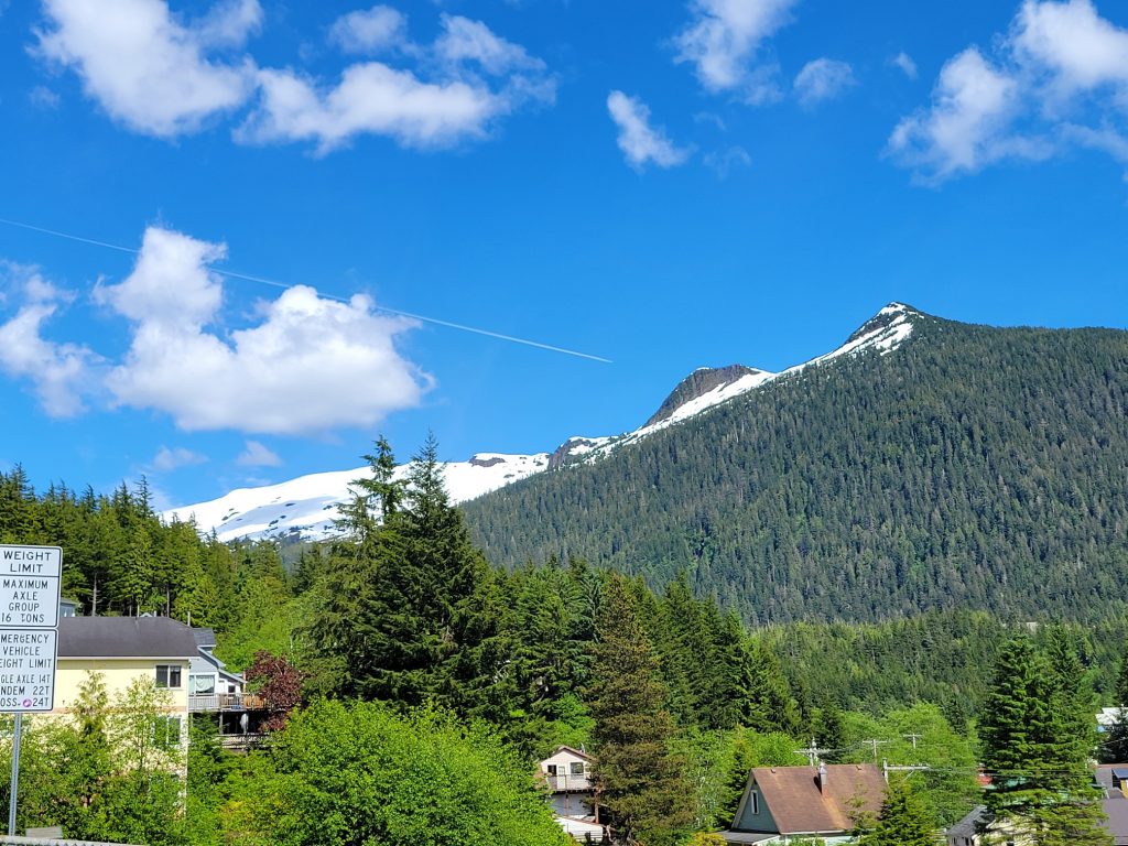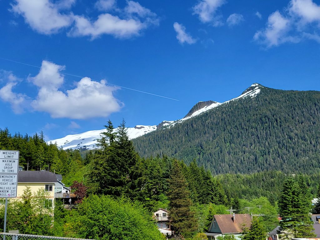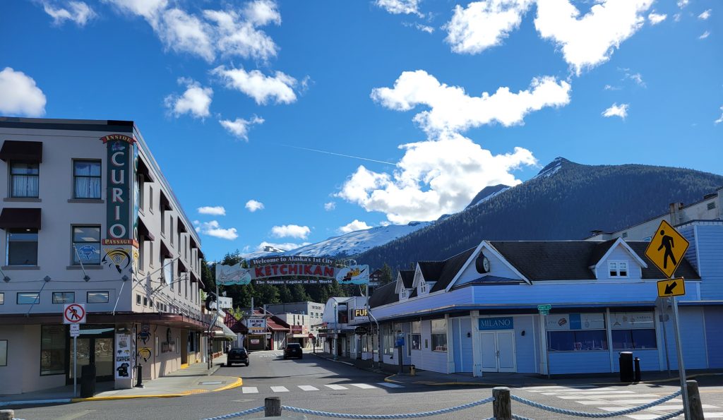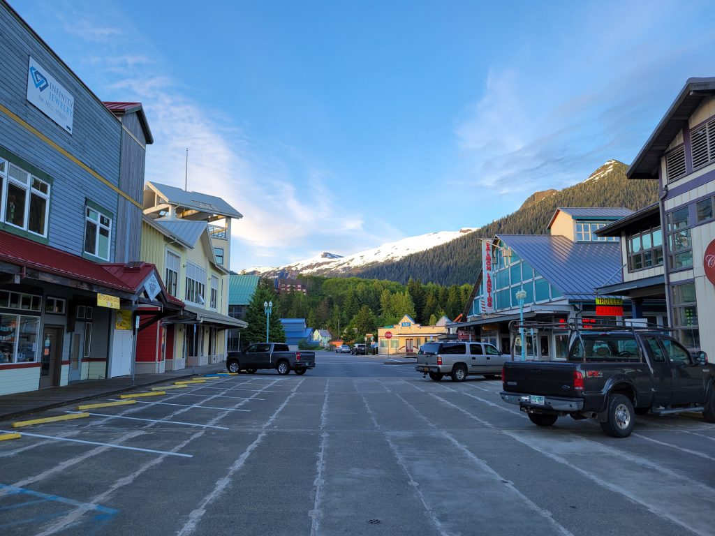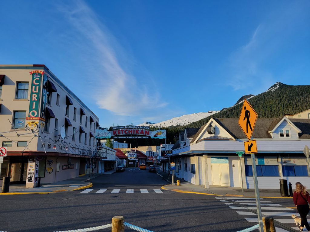 After the museum I hiked back to the town next to the stream and down Married Man’s trail to Creek Street and a souvenir shop. I got a reversible fleece / water-resistant jacket with Alaska embroidered on it for $19.99. I did find out there is a local sales tax despite there not being a state sales tax.