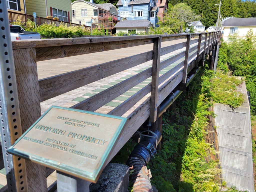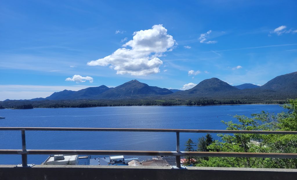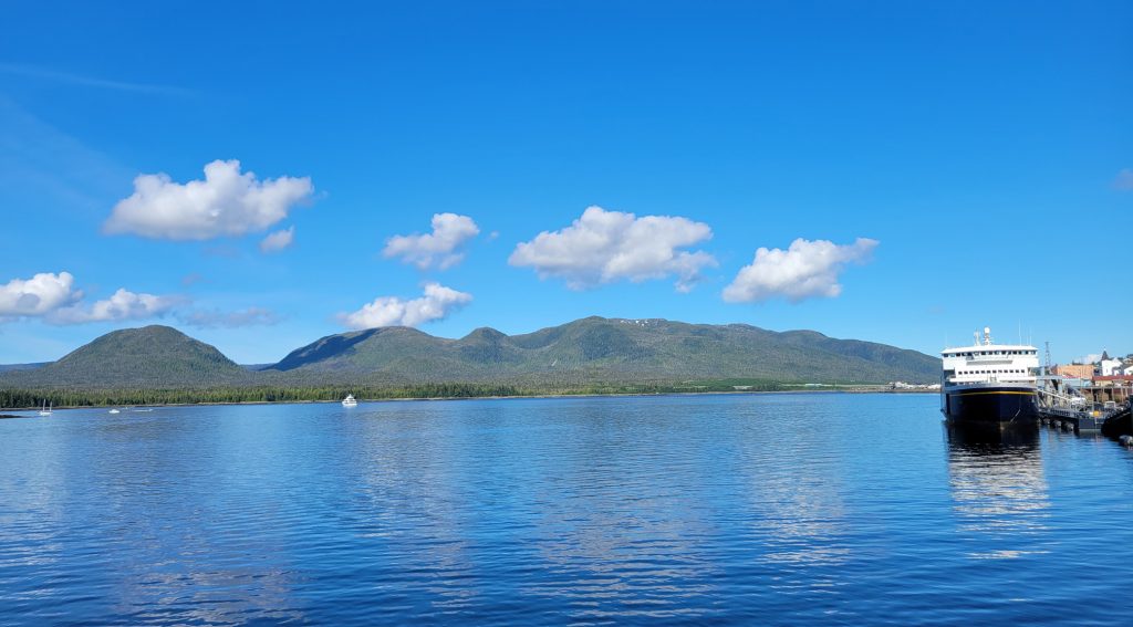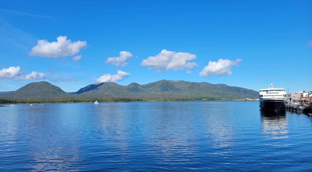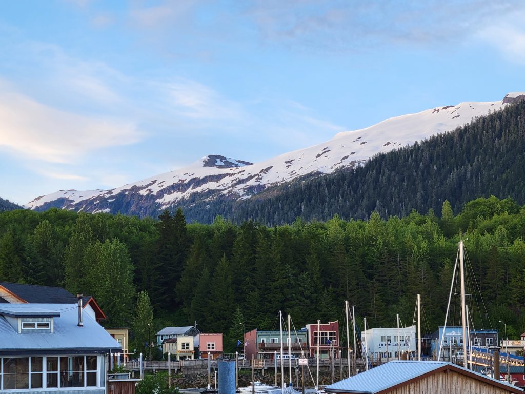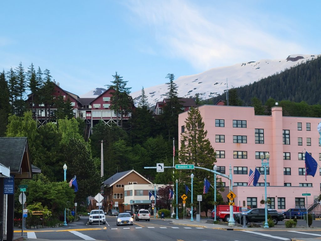 After the museum I hiked back to the town next to the stream and down Married Man’s trail to Creek Street and a souvenir shop. I got a reversible fleece / water-resistant jacket with Alaska embroidered on it for $19.99. I did find out there is a local sales tax despite there not being a state sales tax.