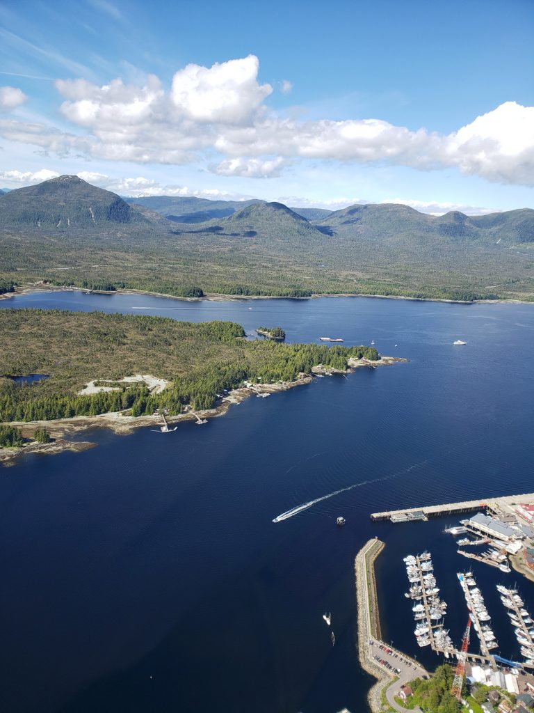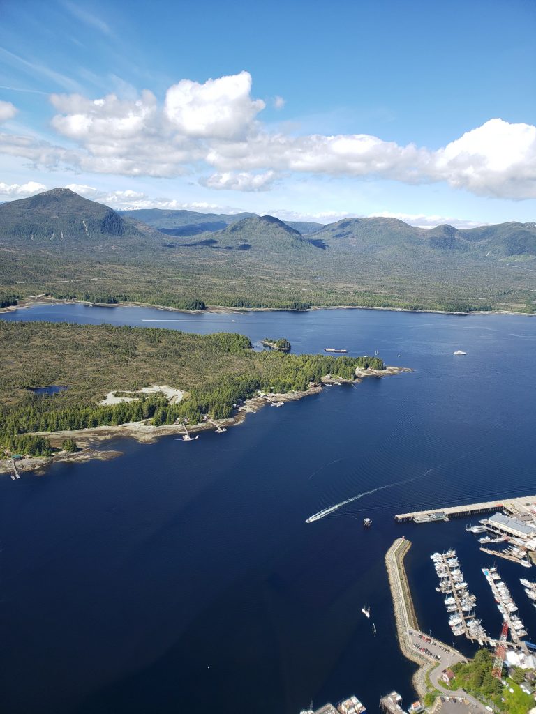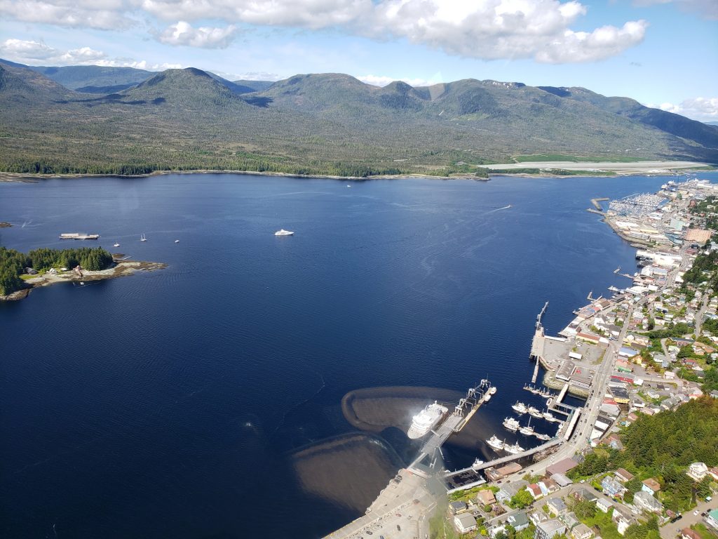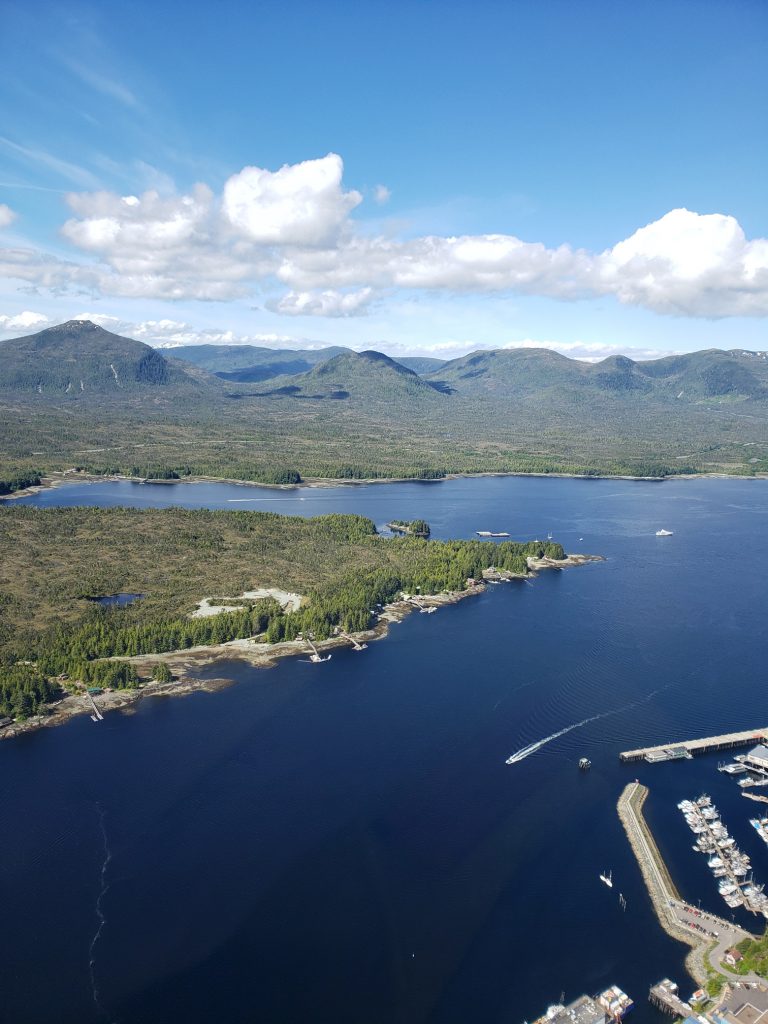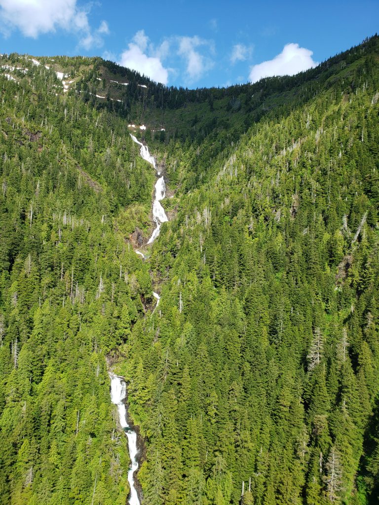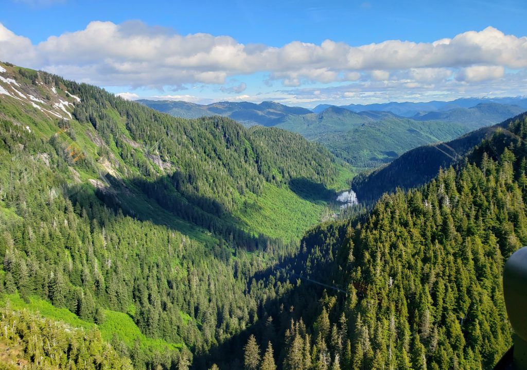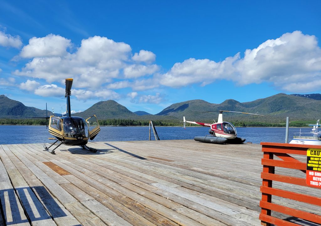 The tour I selected was the Combo Tour, you can see more details in the link below. It flew over the town up near the snow on top of the mountain, over a still mirror lake and over to a large waterfall. After the waterfall we landed on Annette Island on a small platform about 1100 feet above sea level.