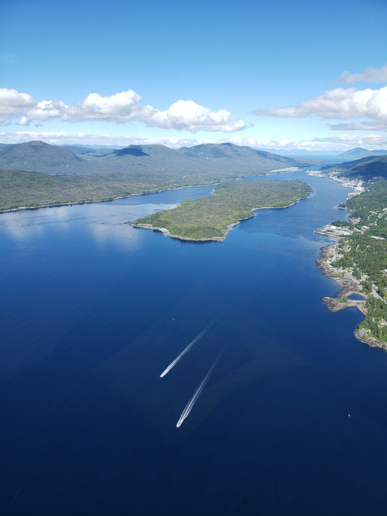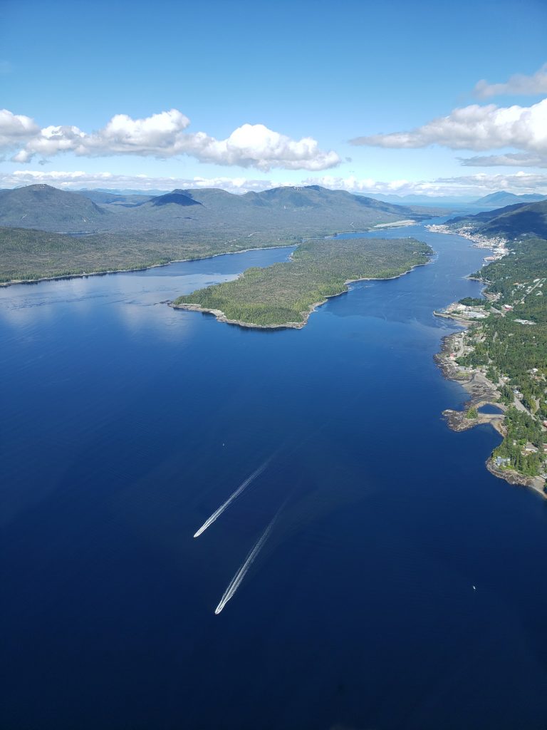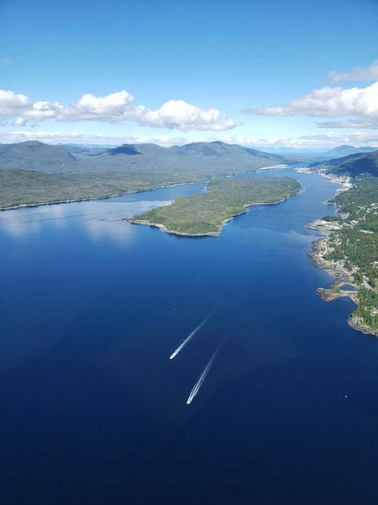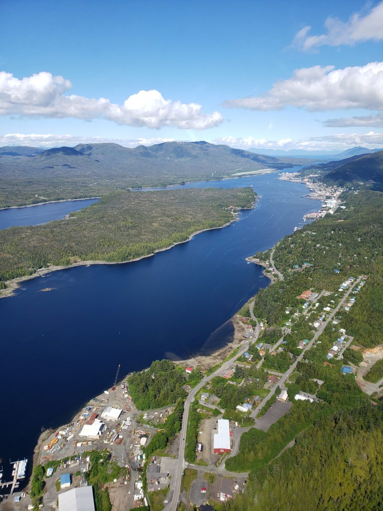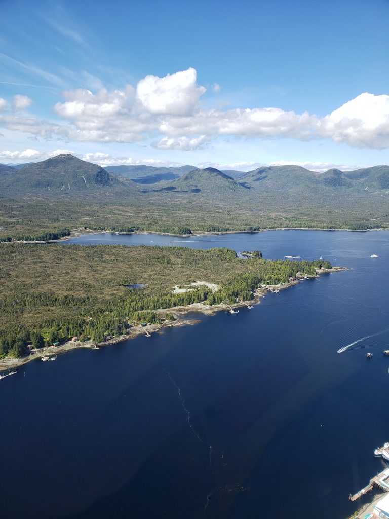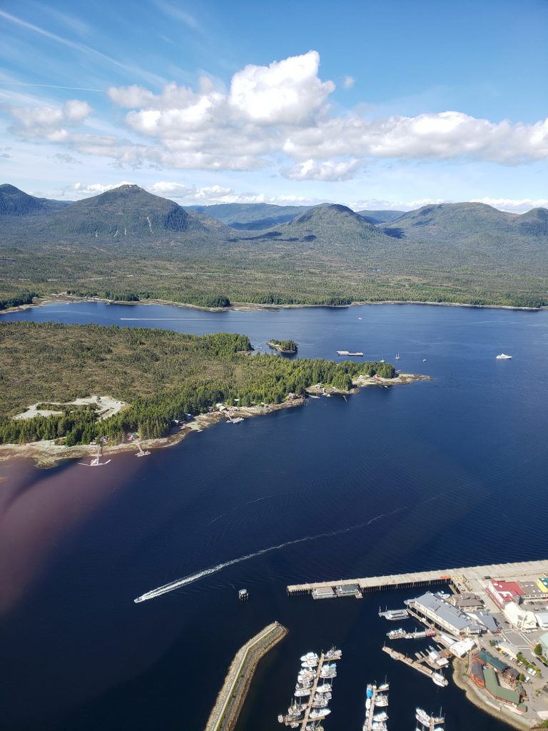 The tour I selected was the Combo Tour, you can see more details in the link below. It flew over the town up near the snow on top of the mountain, over a still mirror lake and over to a large waterfall. After the waterfall we landed on Annette Island on a small platform about 1100 feet above sea level.