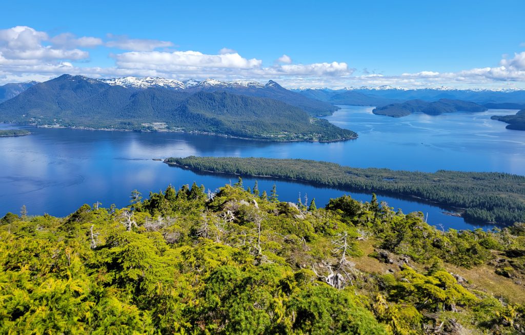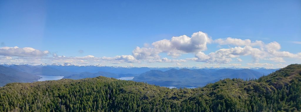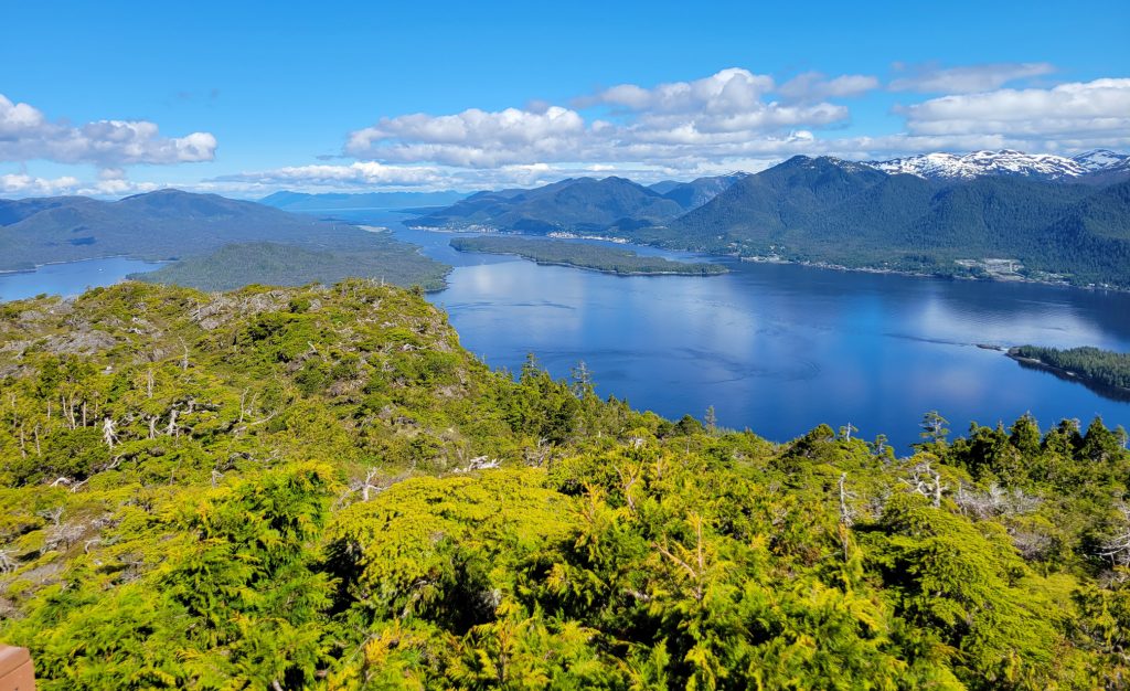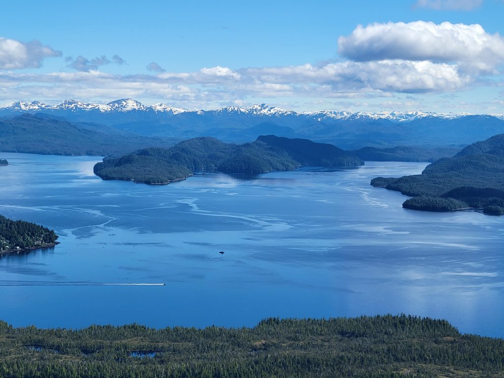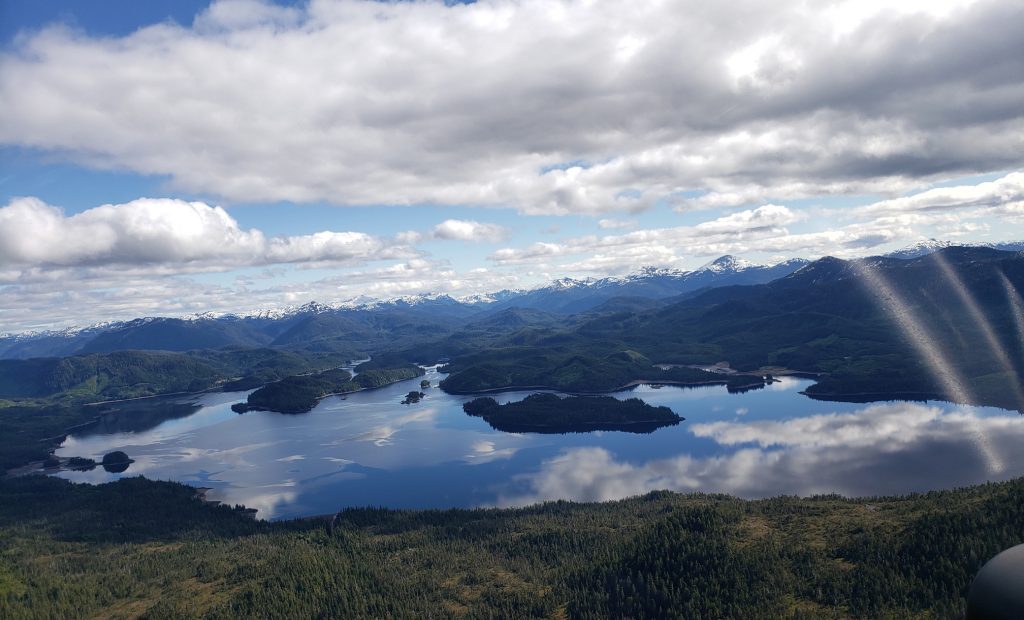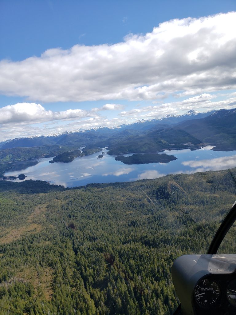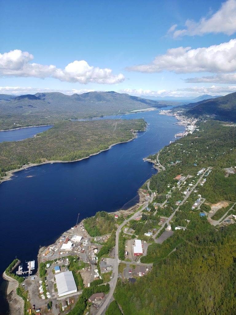 The tour I selected was the Combo Tour, you can see more details in the link below. It flew over the town up near the snow on top of the mountain, over a still mirror lake and over to a large waterfall. After the waterfall we landed on Annette Island on a small platform about 1100 feet above sea level.