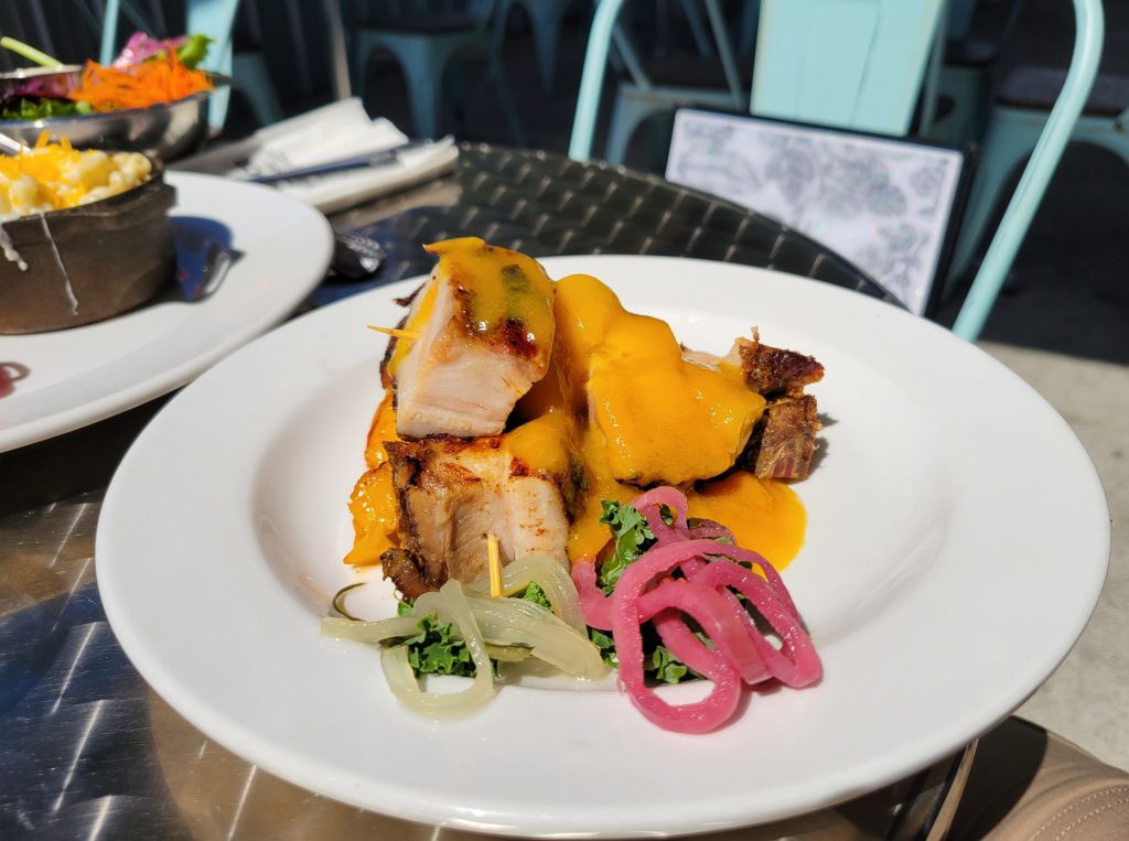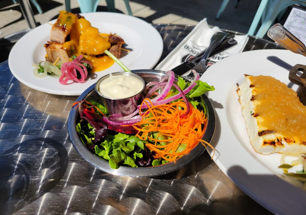 pork belly, salad and halibut