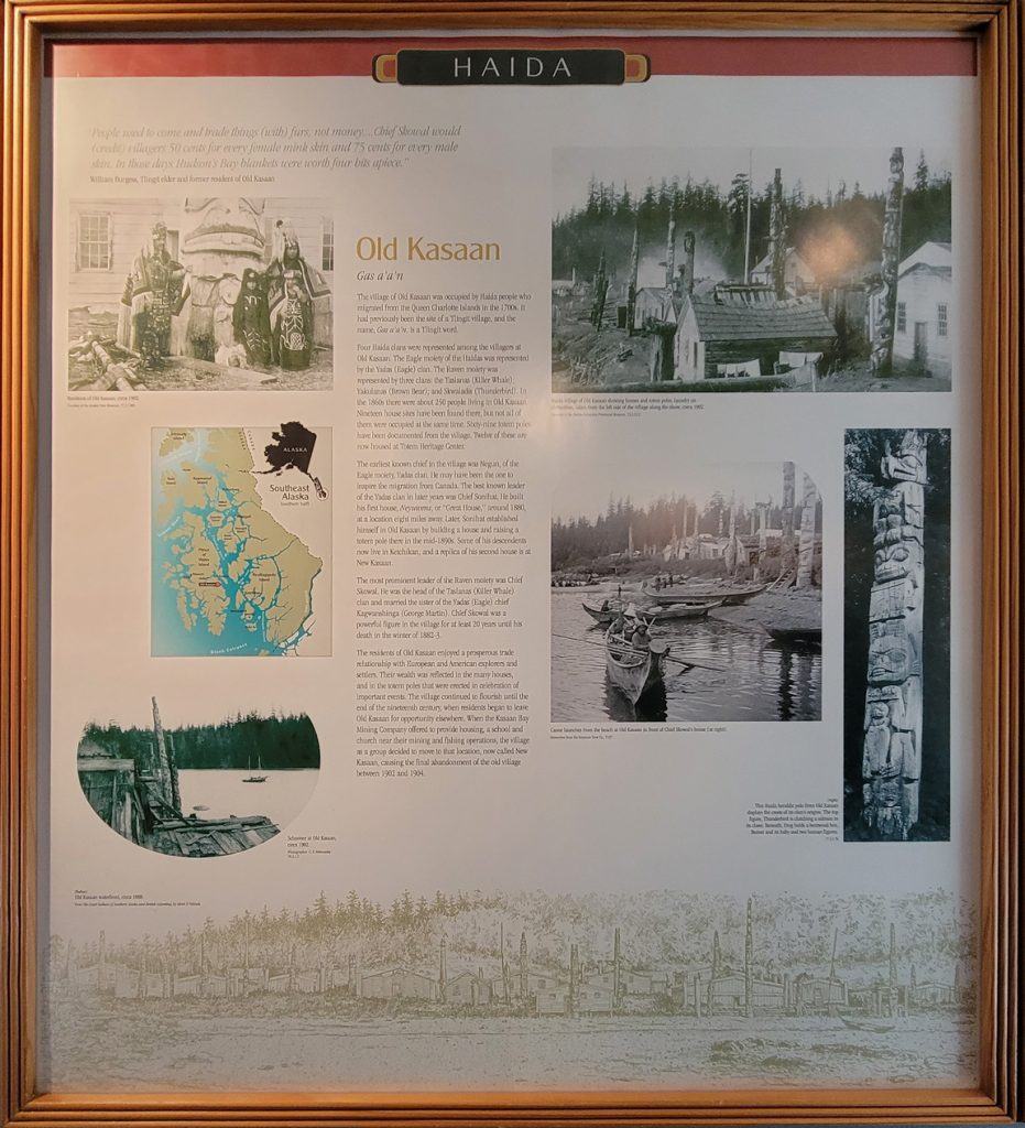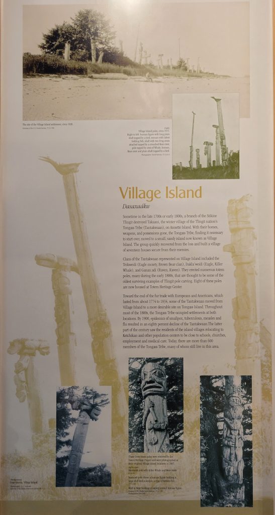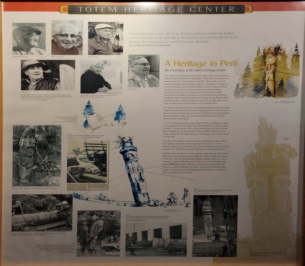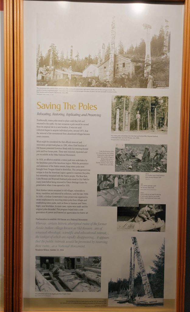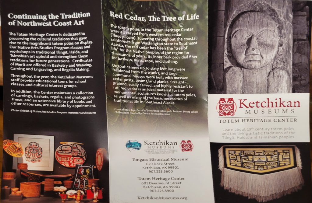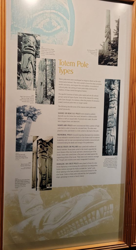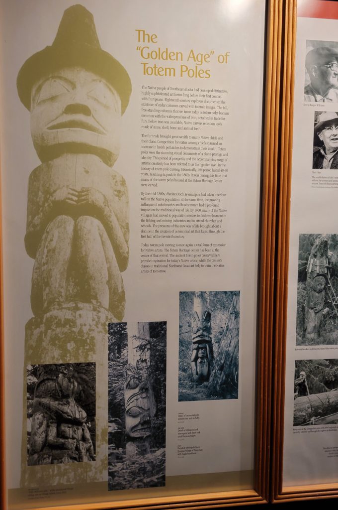 It was $6 to enter the Totem heritage Center Museum (or $9 for a combination ticket with another museum). The people there were very friendly and answered quite a few questions. I should have rolled video since it was really good information. There were a few historic totems they had preserved as well as a canoe made by steaming the wood to form it. They also had a nice video explaining the area and heritage of the three tribes that live in the area.