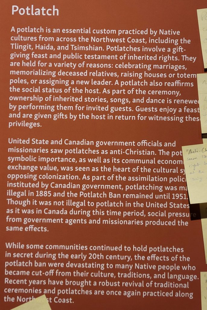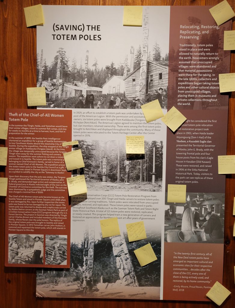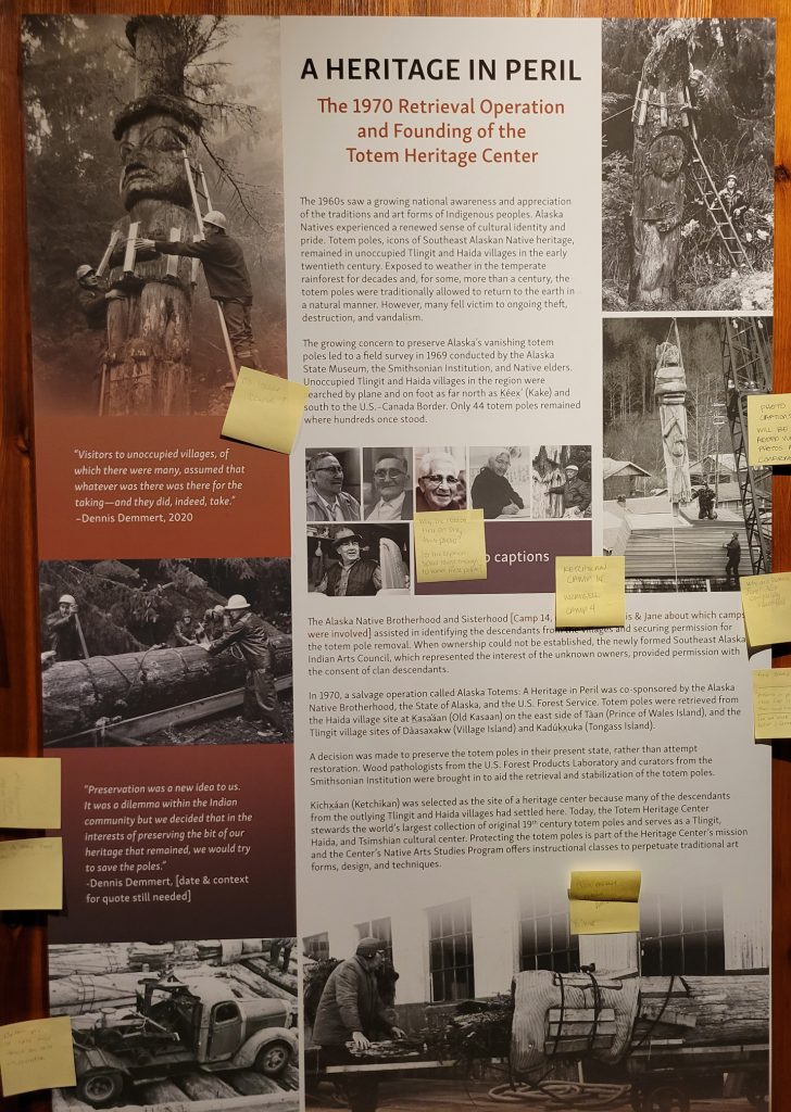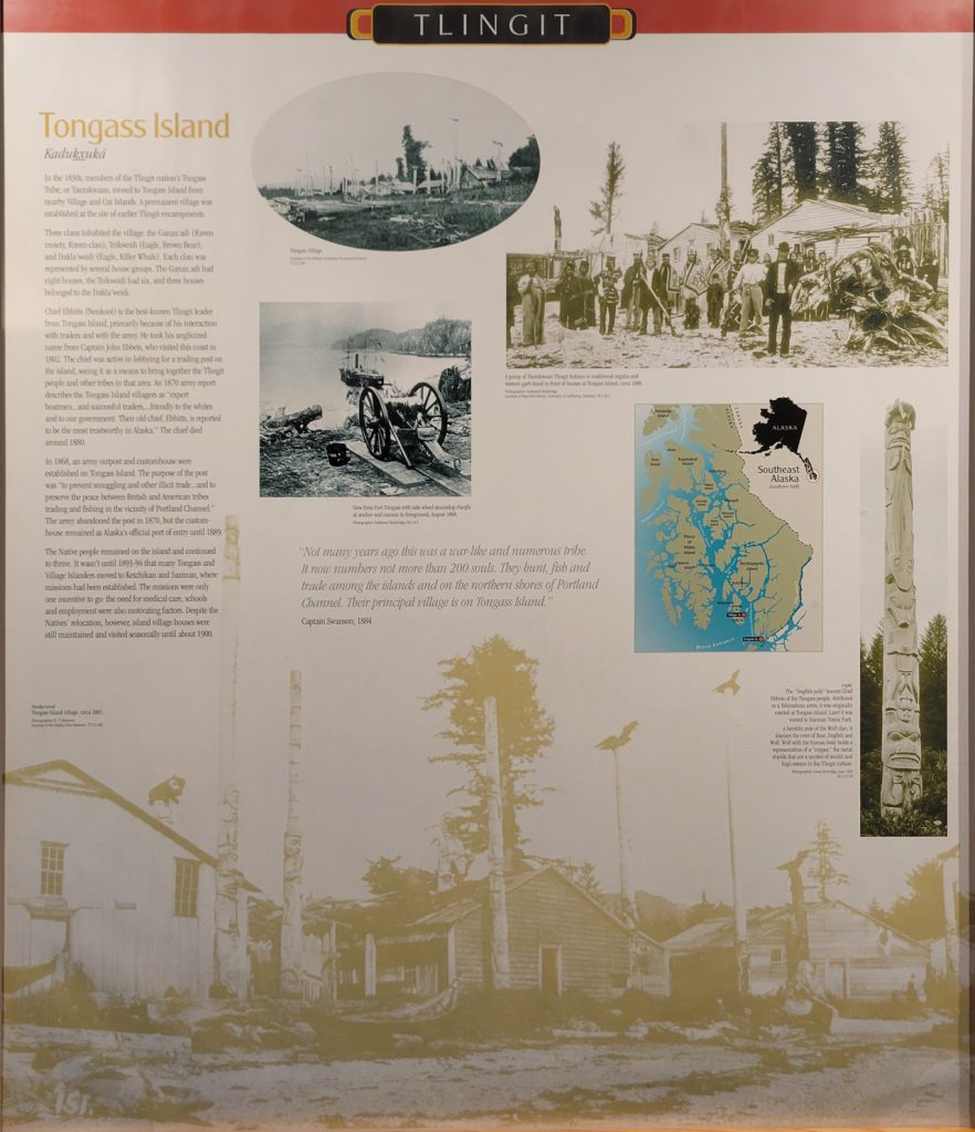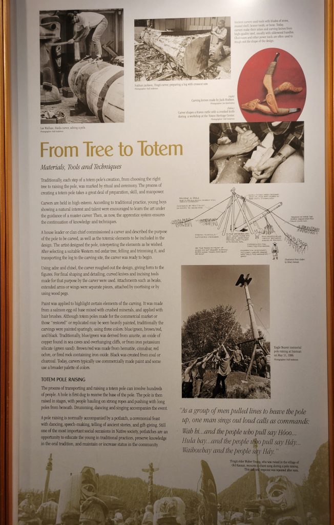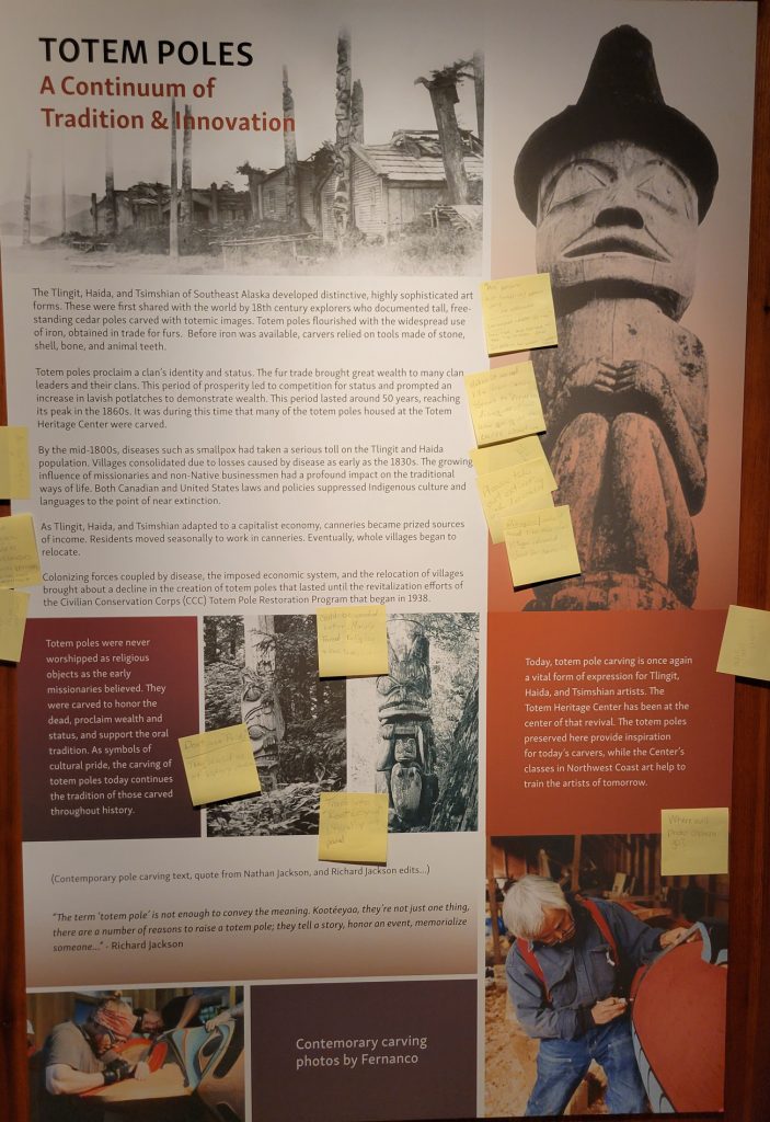 It was $6 to enter the Totem heritage Center Museum (or $9 for a combination ticket with another museum). The people there were very friendly and answered quite a few questions. I should have rolled video since it was really good information. There were a few historic totems they had preserved as well as a canoe made by steaming the wood to form it. They also had a nice video explaining the area and heritage of the three tribes that live in the area.