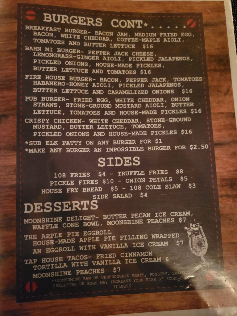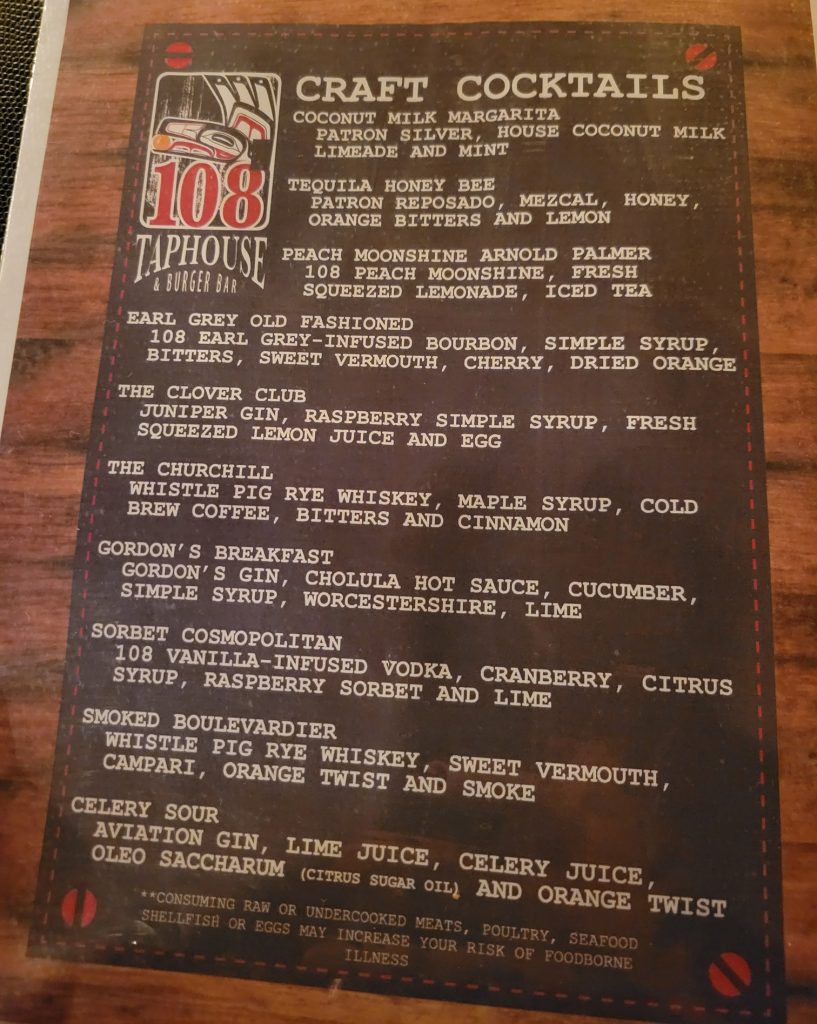 I decided to eat at the 108 Tap House & Burger Bar