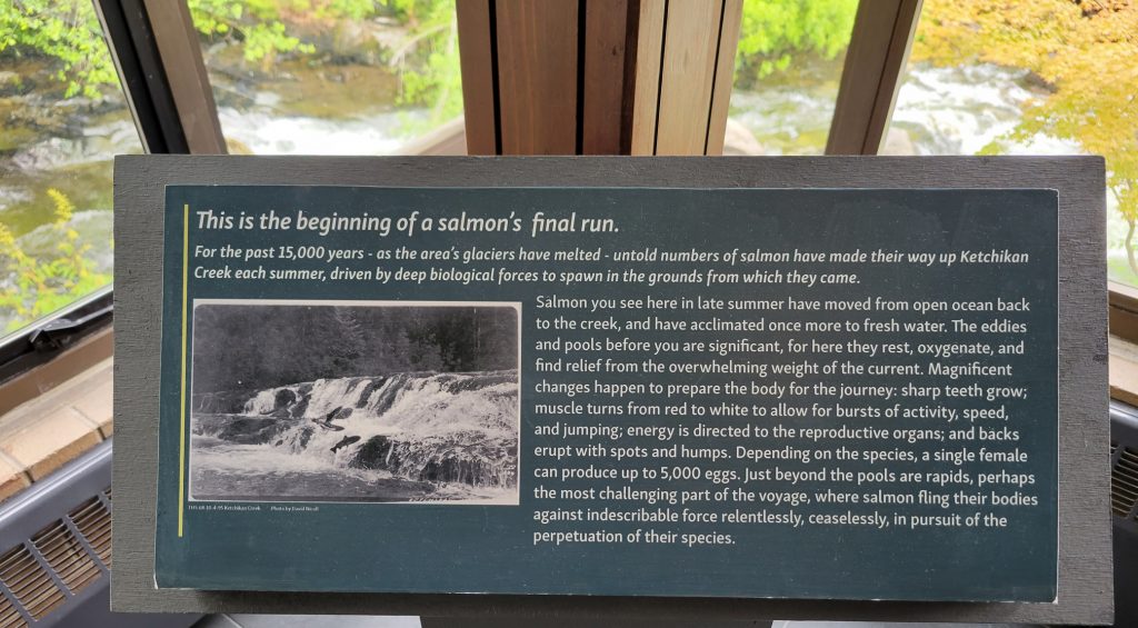 I called the Cape Fox Lodge to confirm the tram wasn’t functional before needlessly climbing the hill for lunch. It is a very nice hotel, but in a bad location if the tram isn’t working. If the tram is working it’s fabulous as it goes right to the bottom of Creek Street.