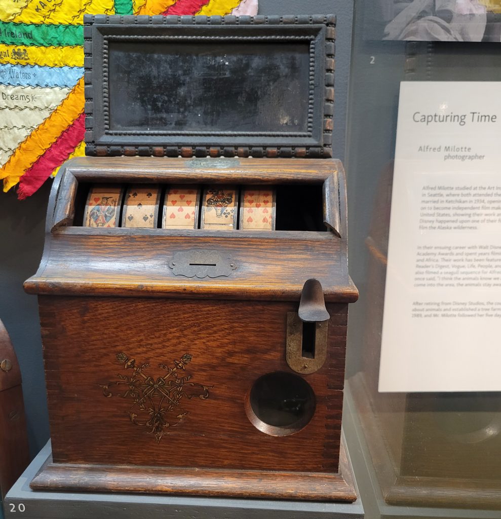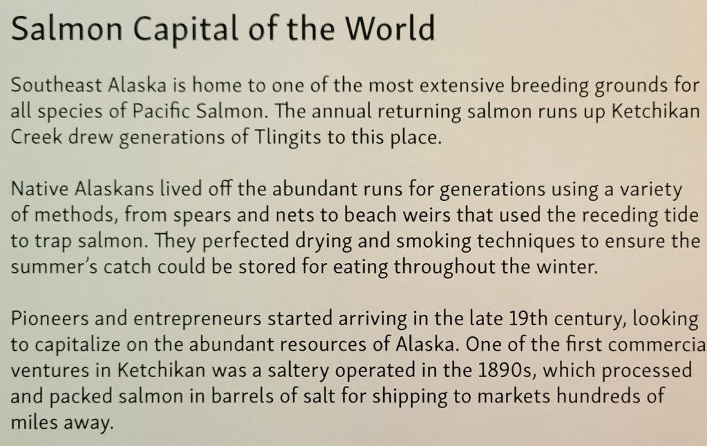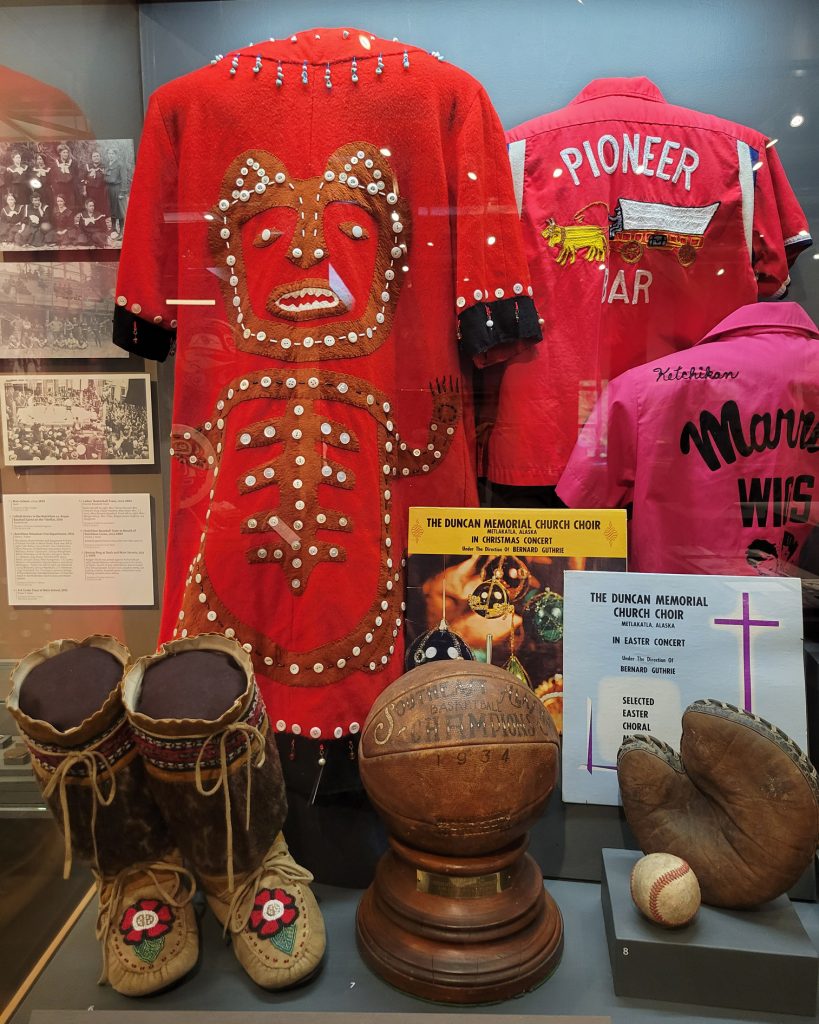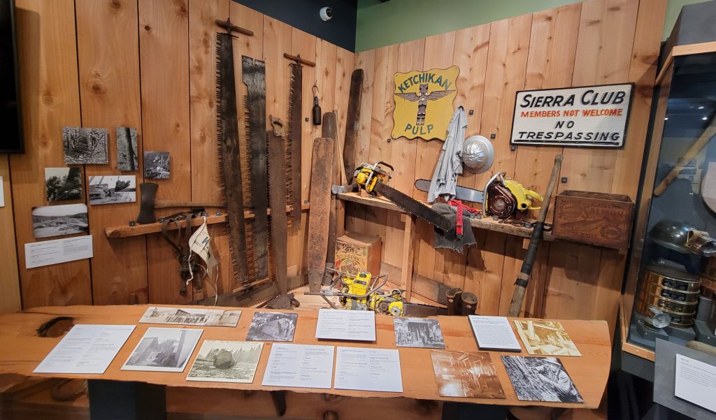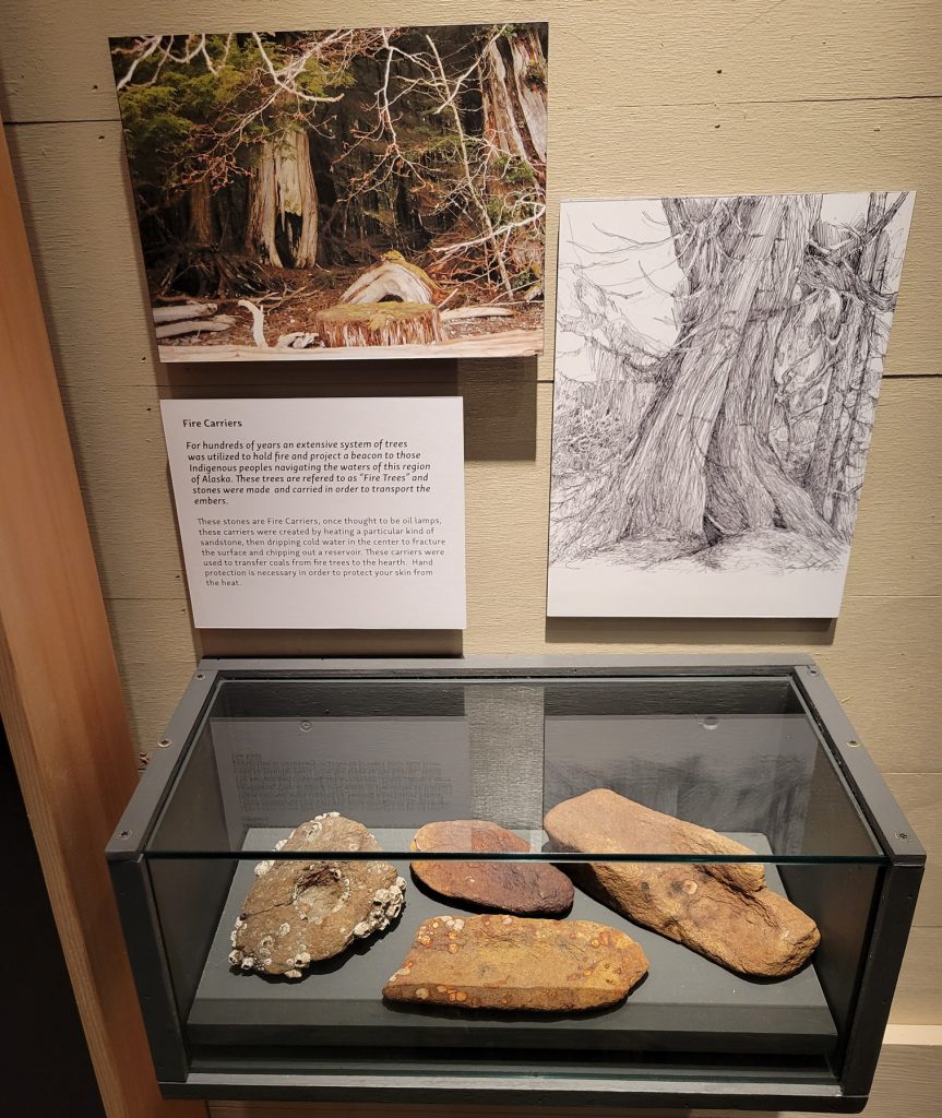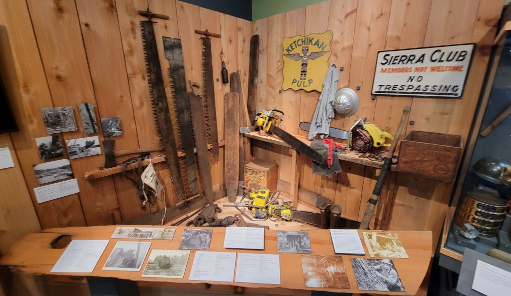 The Tongass Historical Museum was a nice little museum (probably only worth the $3 extra when you buy the combination ticket), but still had a few interesting artifacts. Probably the best part was the information the museum attendant gave us about the cedar woven bowls and the fact that the Cape Fox Lodge also had some items on display. She actually said the weaving was so tight that they used the baskets and cups to hold water and to cook in (placing hot rocks from the fire into water to boil the water).