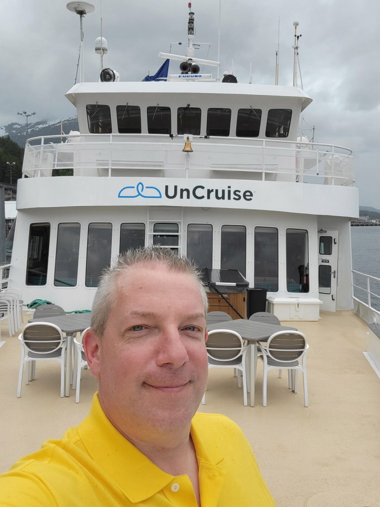 When I got to the Cape Fox Lodge they didn’t ask to see the vaccination cards, or ID. They said they would check it at the ship… so I left my luggage there and they will send the big suitcases to my room and I left the laptop bag behind in case I needed the laptop before I got on the ship.