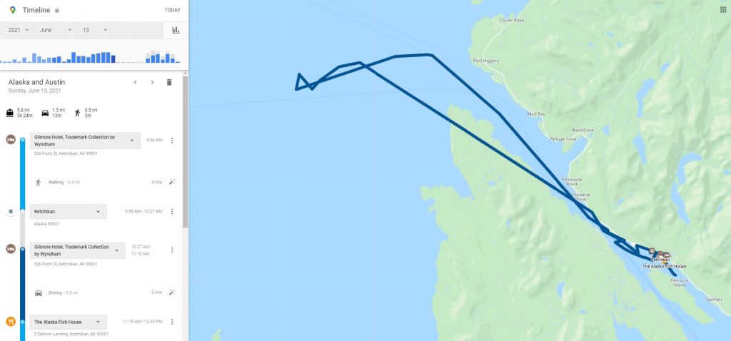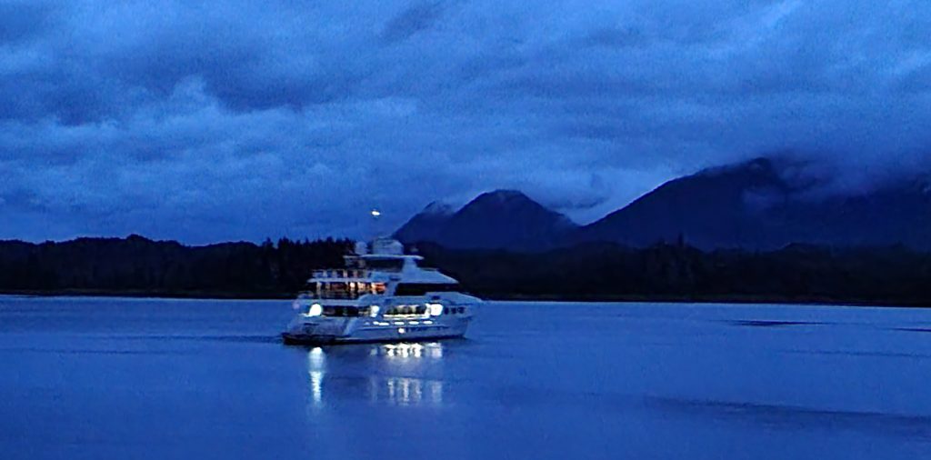 At some point we turned around and headed back south to pass by Ketchikan at night. I heard they needed to stay within range of the cell phone towers to send in some paperwork, but I am not sure if that was true.