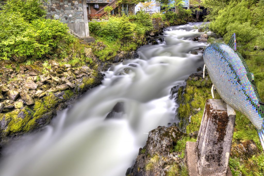 After lunch I took some more pictures of Ketchikan Creek and Creek Street. I also watched some people fishing off the bridge, one person had caught a salmon.