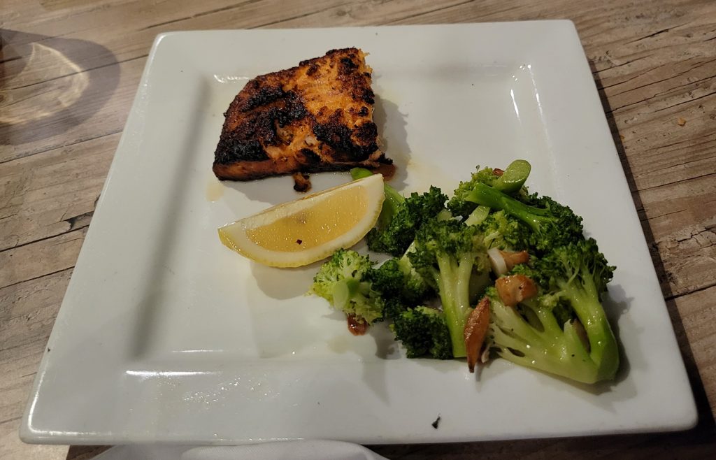 I decided to try the Philly cheesesteak wontons and the pork potstickers. I wanted to try the Caribbean Jerk Chicken, but they were out of it today. I decided to have the salmon as plan B. The food was good and I really enjoyed the wontons.