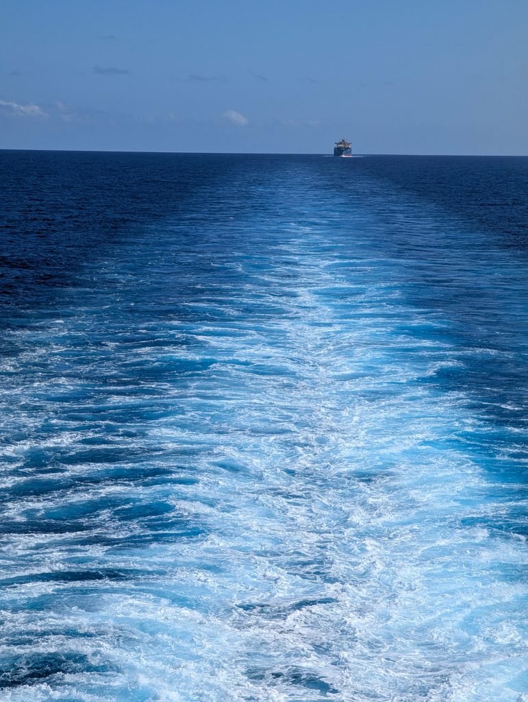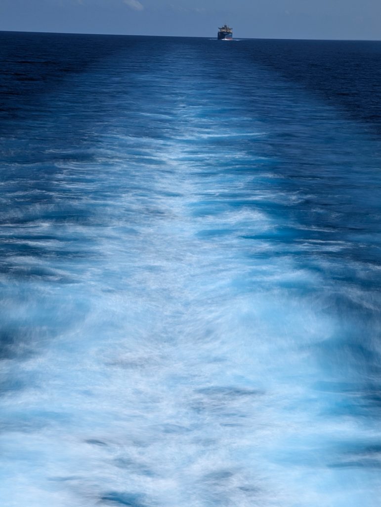 I saw one ship was not too far behind us, so I rushed back to the aft to get a picture of it.