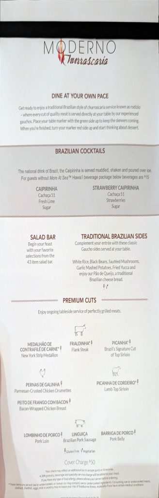 I chose to eat dinner at Moderno, their Brazilian Churrascurria.