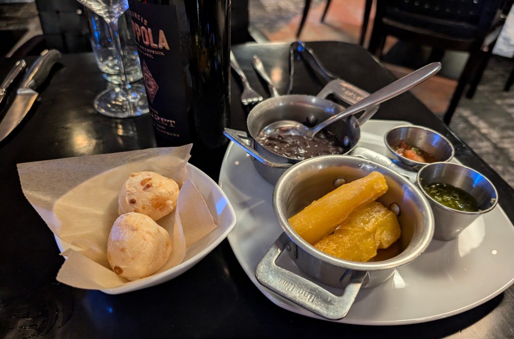 The sides… Brazilian cheese bread, fried yucca and black beans.
