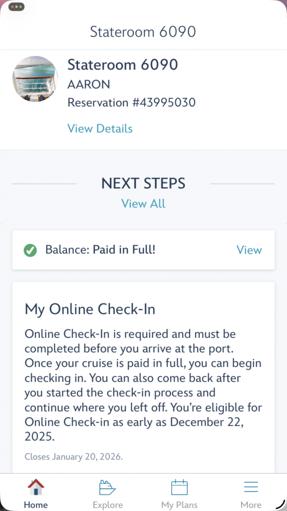 I logged into the Disney Cruise Line app and started exploring.