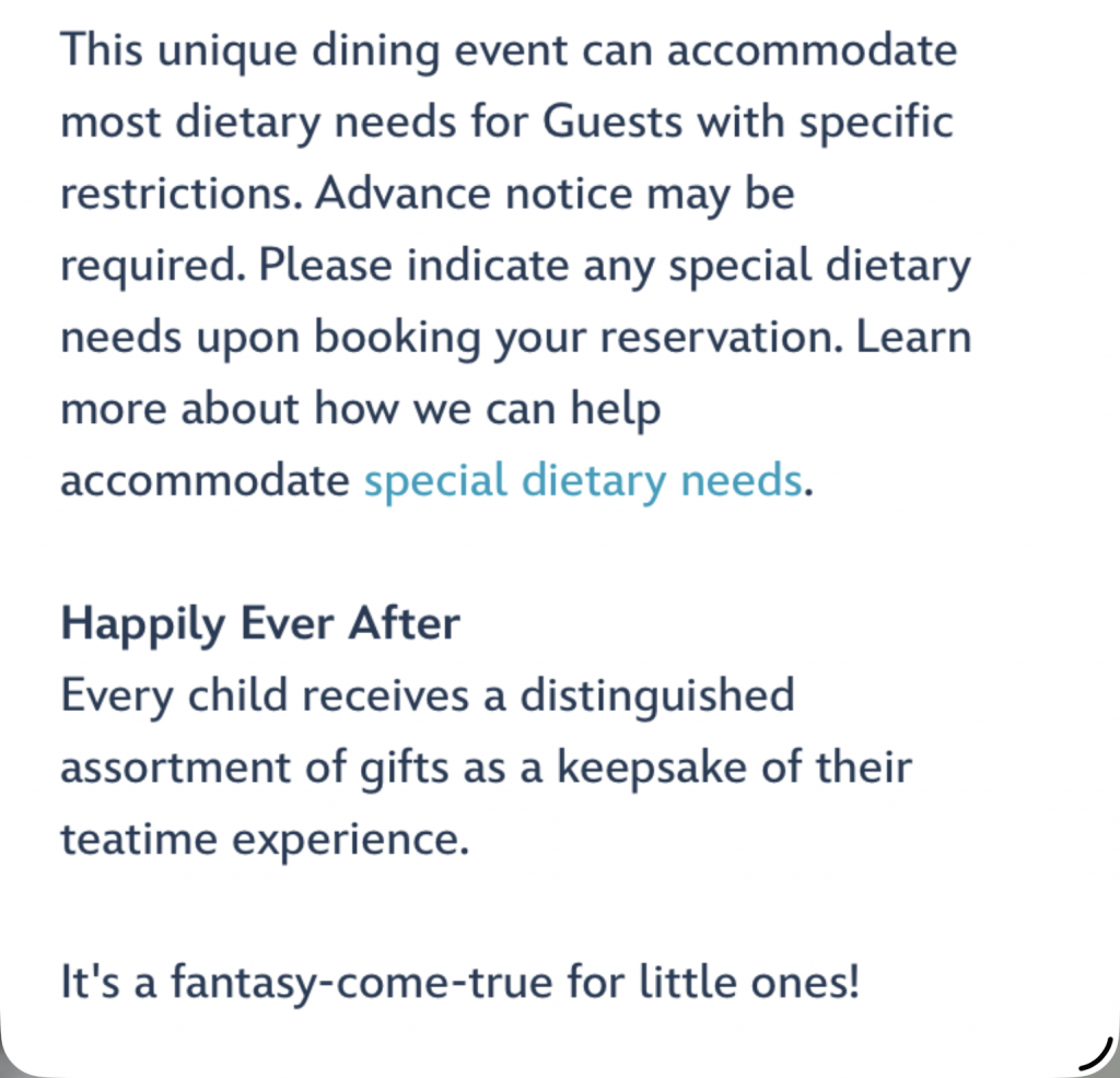 For parents with small children there is also the very expensive Royal Court Tea. At $275 per child you better hope you only have one child.