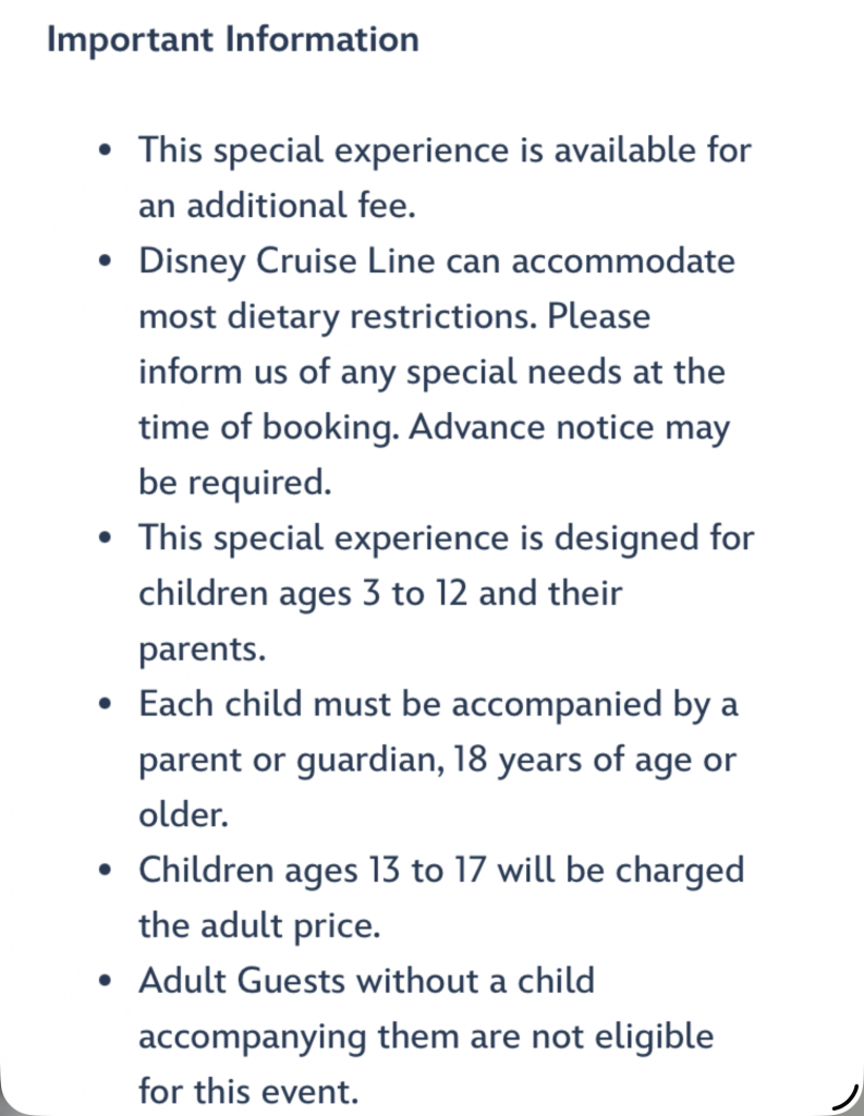 As you can see the fine print says you have to have at least one child because they don’t allow only adults into this experience.