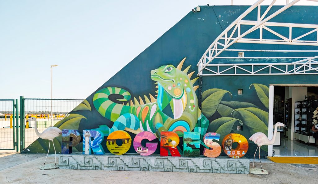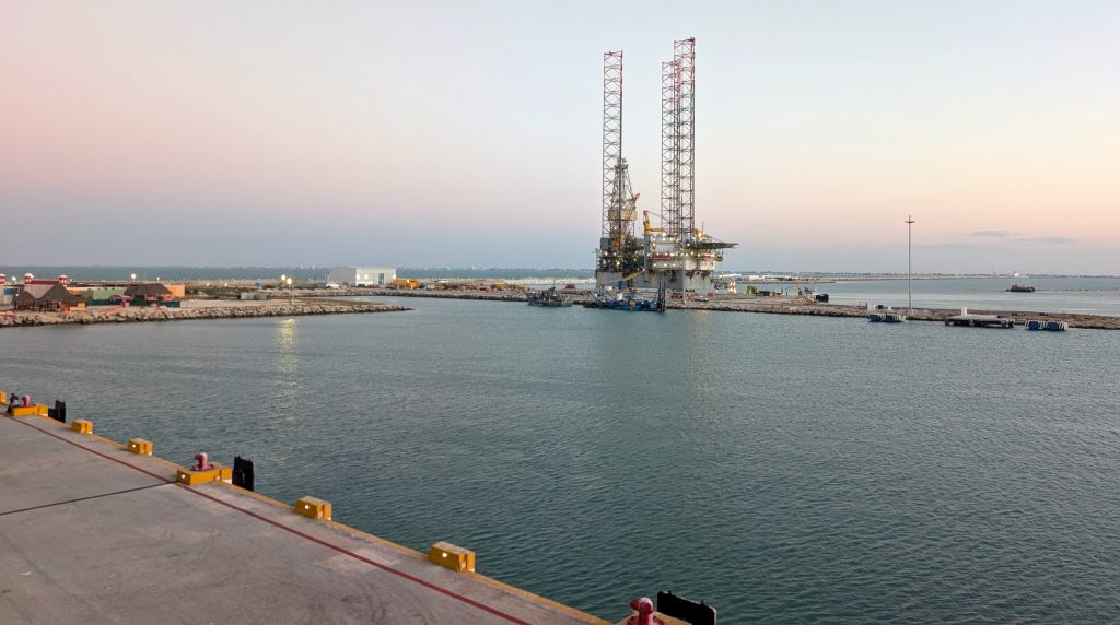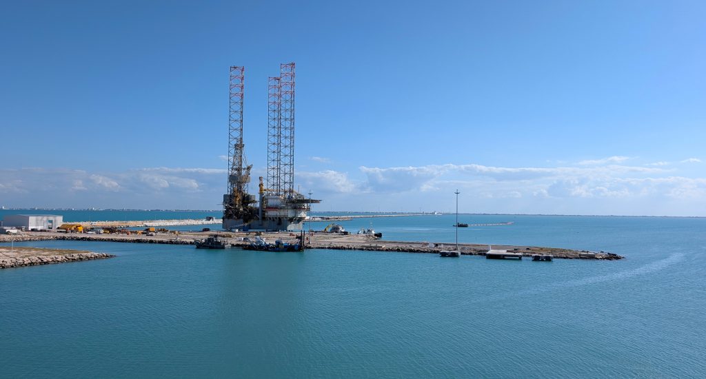 Today the ship arrived a few miles from the shore of Progreso, Mexico. Yes, the pier is that long (nearly 4 miles) and requires a bus to go beyond the tourist trap souvenir shops. Maybe you can see the coast in the picture below.You might have to use your imagination…