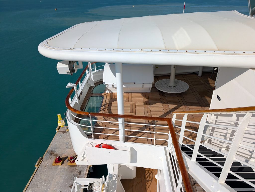 I found a place where you could see the outside part of the bridge. It was not normal to me that the wing of the bridge was actually outside. You can also see the windows in the floor so they can see how close they are to the pier.