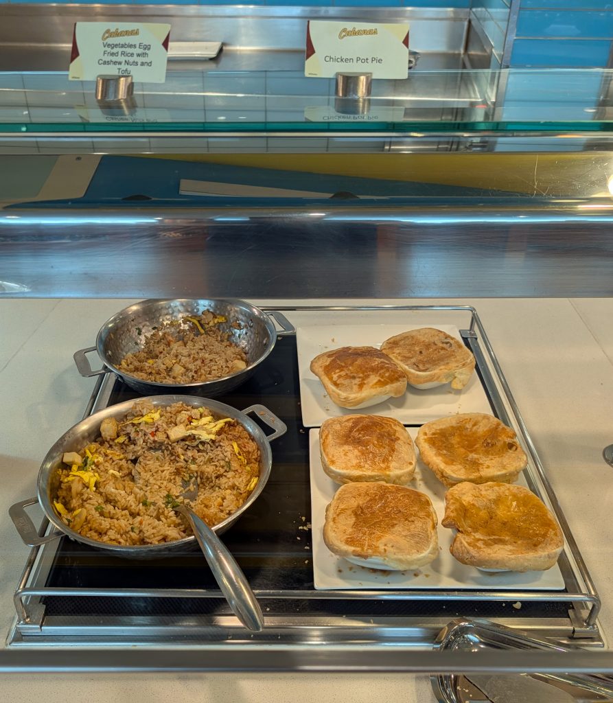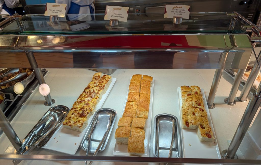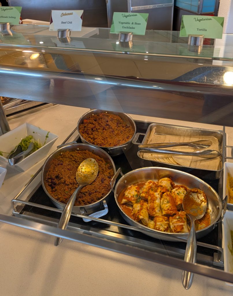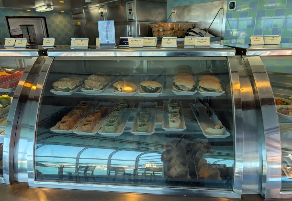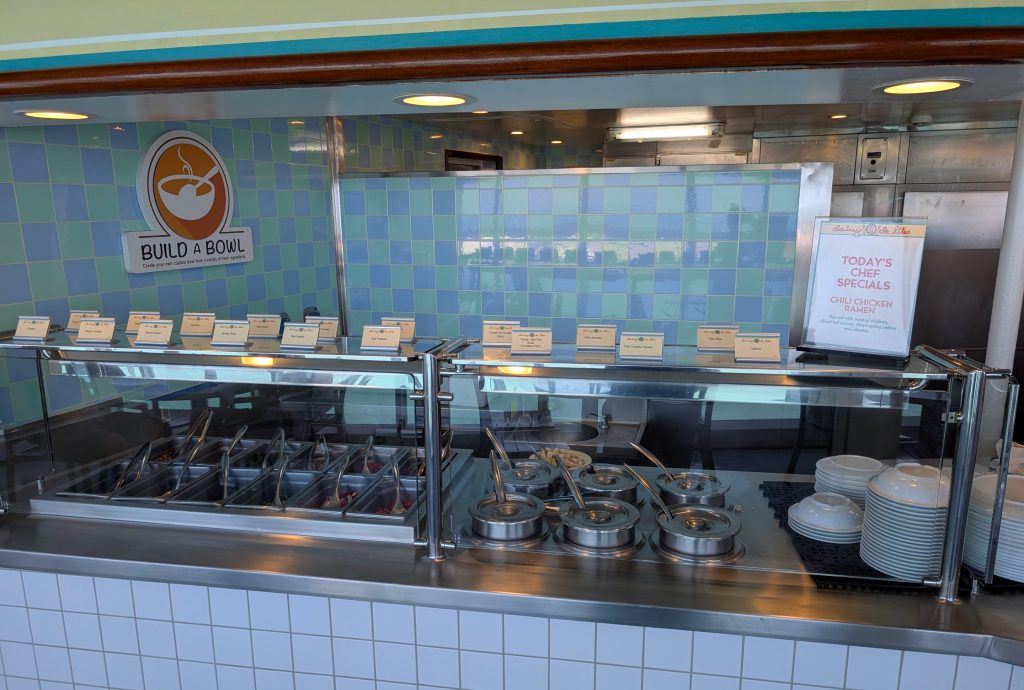 I took a couple of pictures of the Build-a-Bowl and sandwich food options on the pool deck.