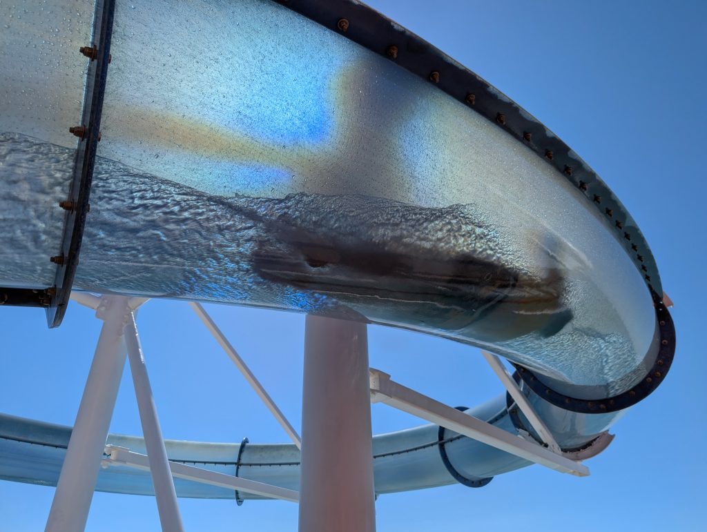I decided today was a good day to attempt the water slide. It was warm and sunny, so it was a perfect day, especially since many people were exploring Mexico. The floor of the slide drops. It’s a pretty quick ride, and even though it’s clear you don’t really see much.