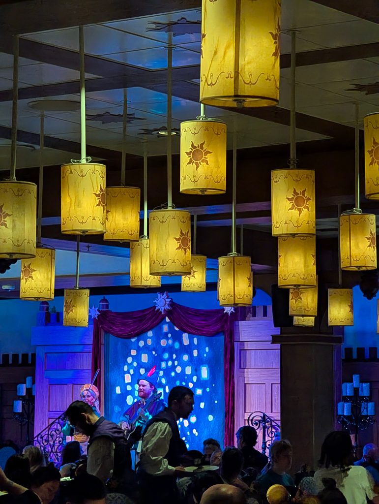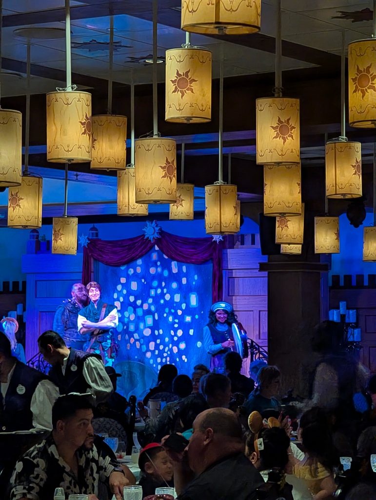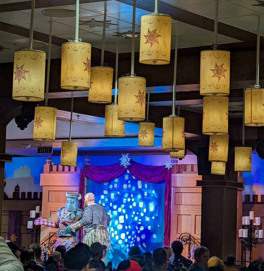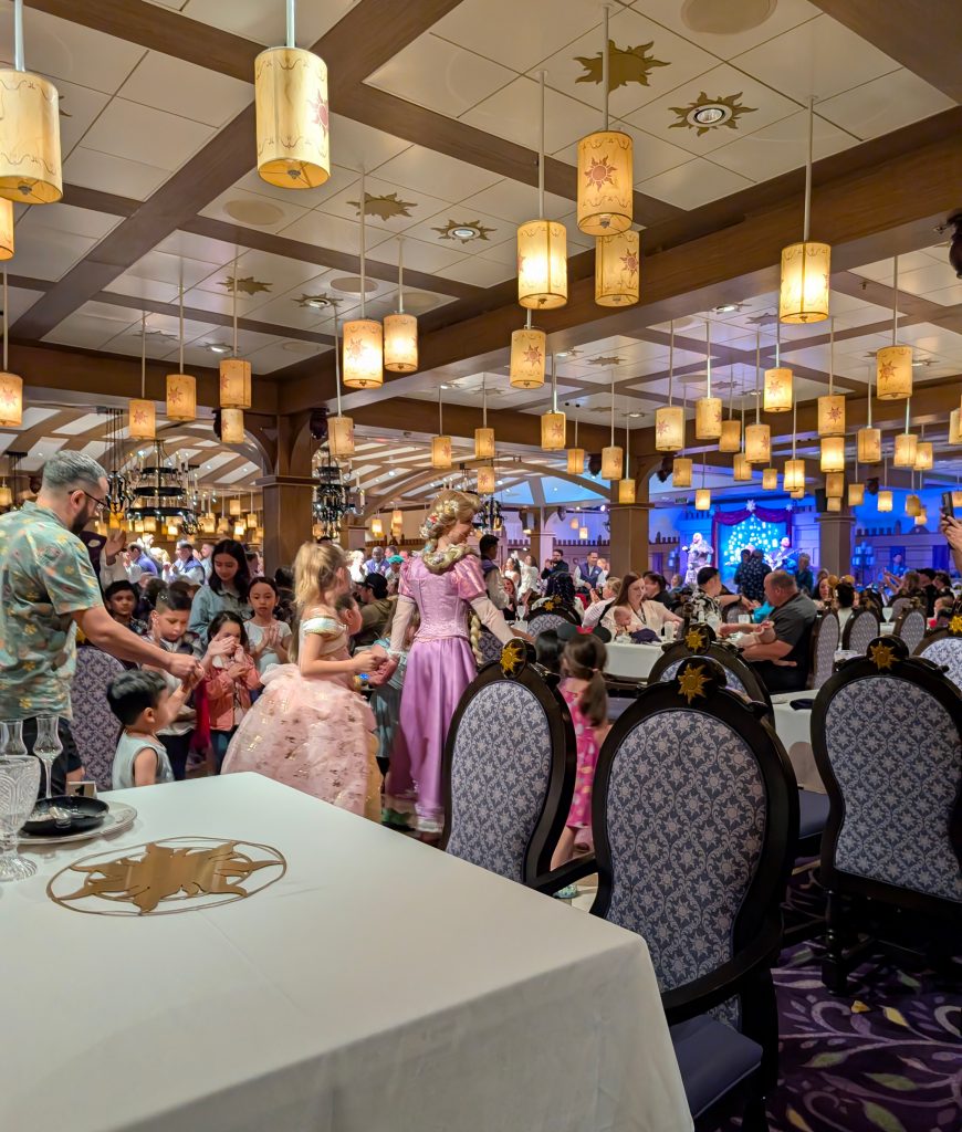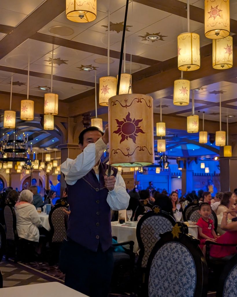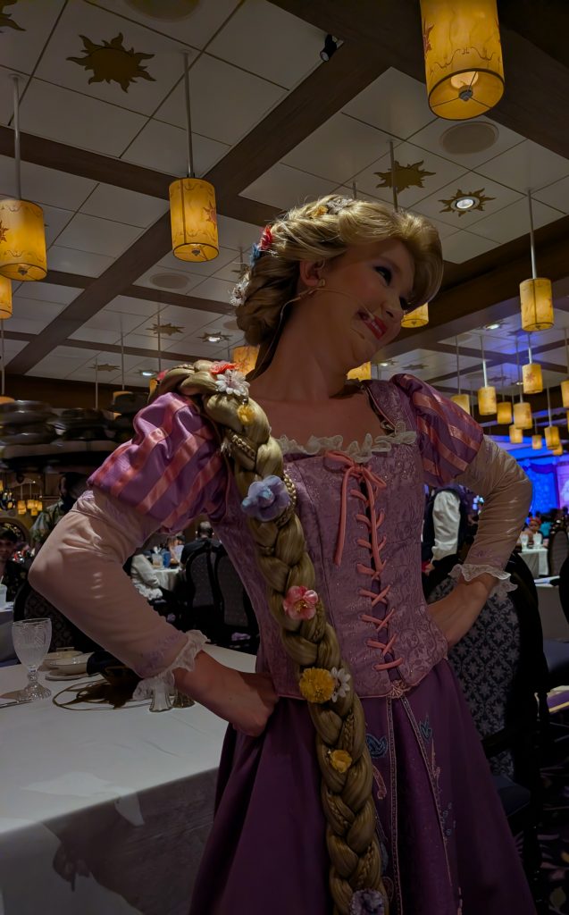 Tonight was the character dining event in Rapunzel’s Royal Table. We were greated by one of the characters at the entrance.