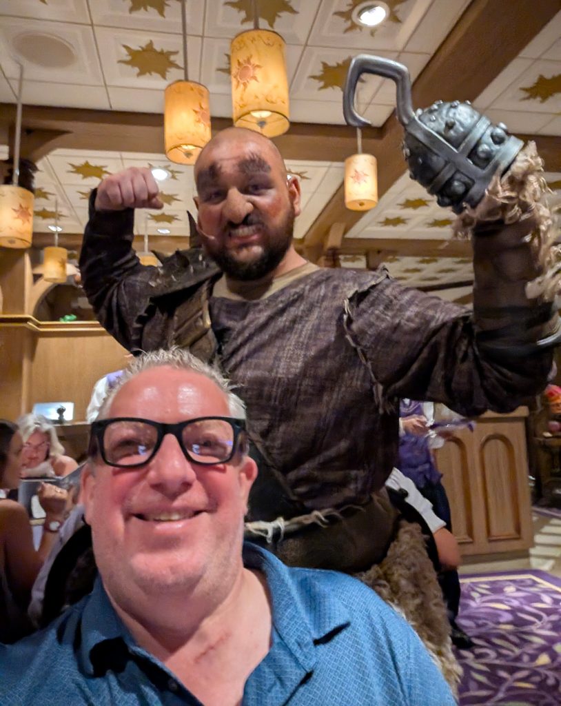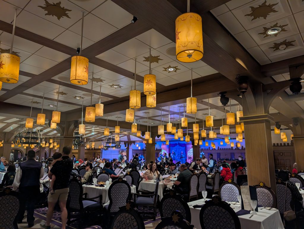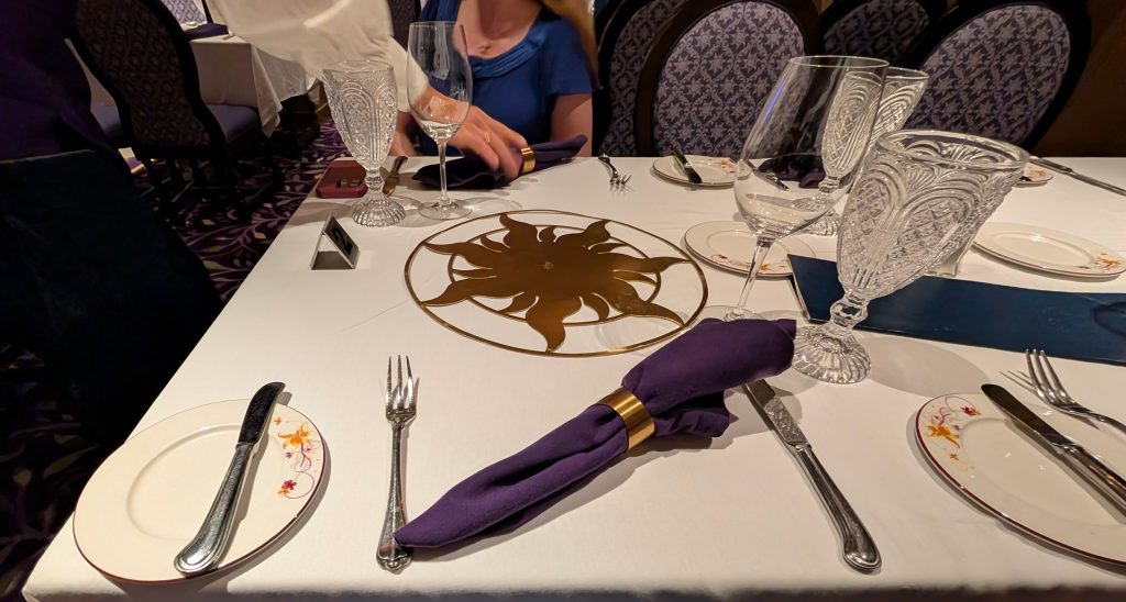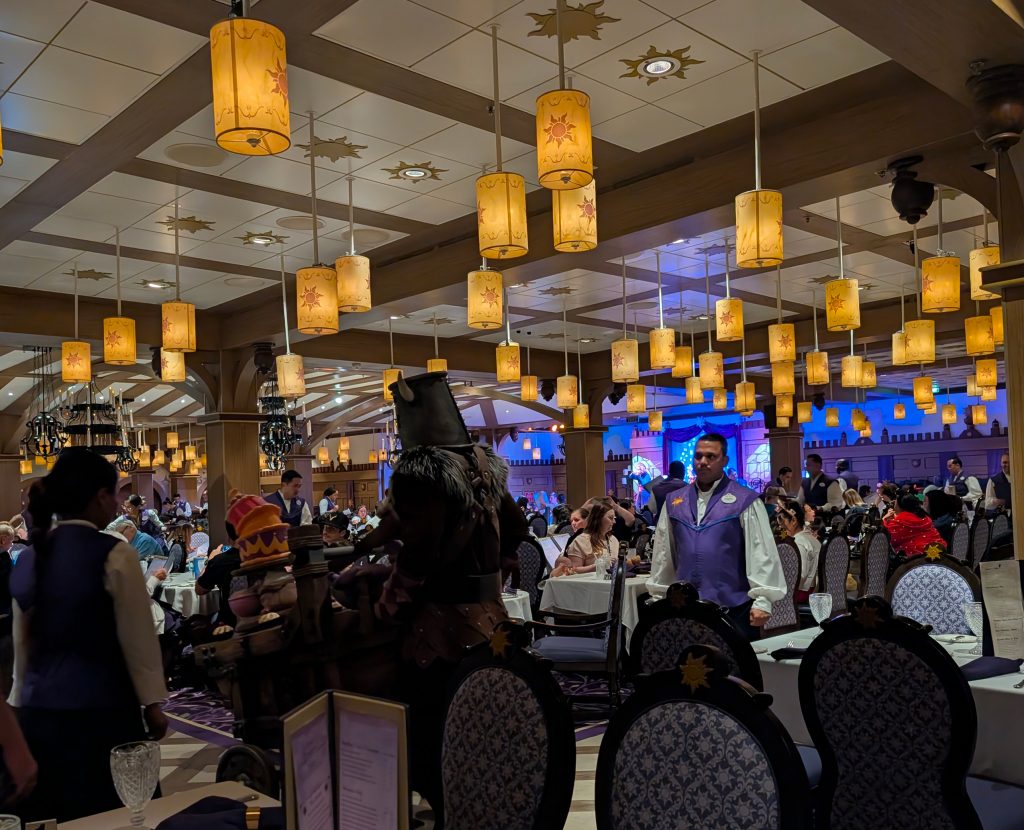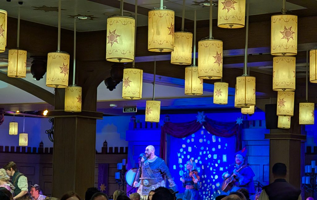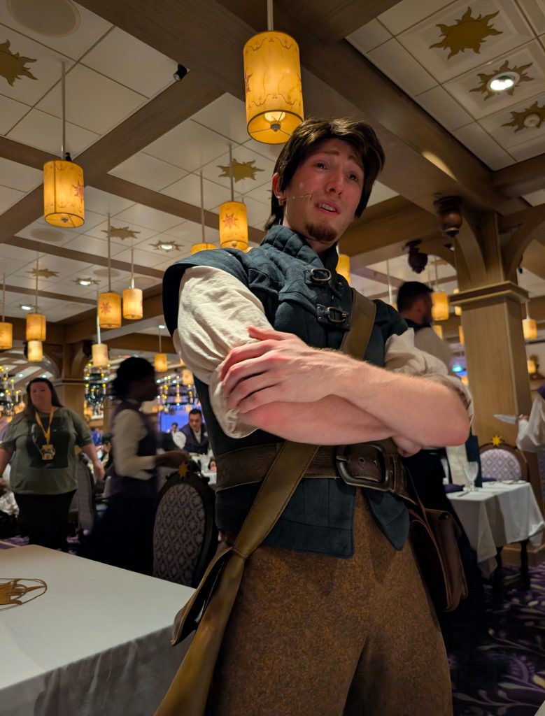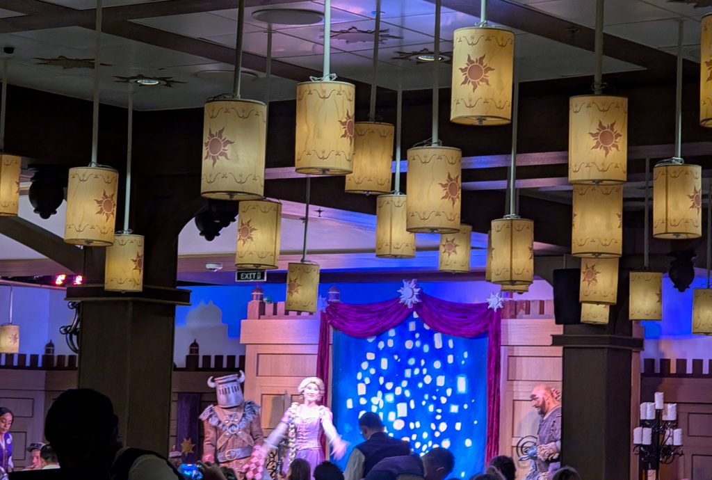 Tonight was the character dining event in Rapunzel’s Royal Table. We were greated by one of the characters at the entrance.