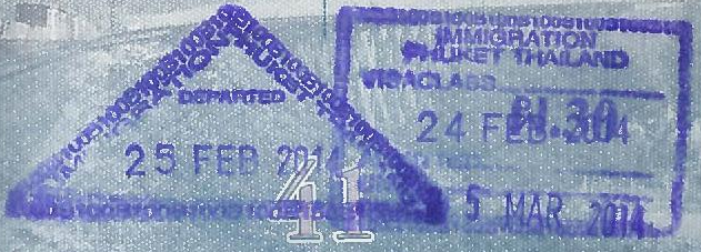 Entry (right) and exit (left) stamp from Phuket, Thailand